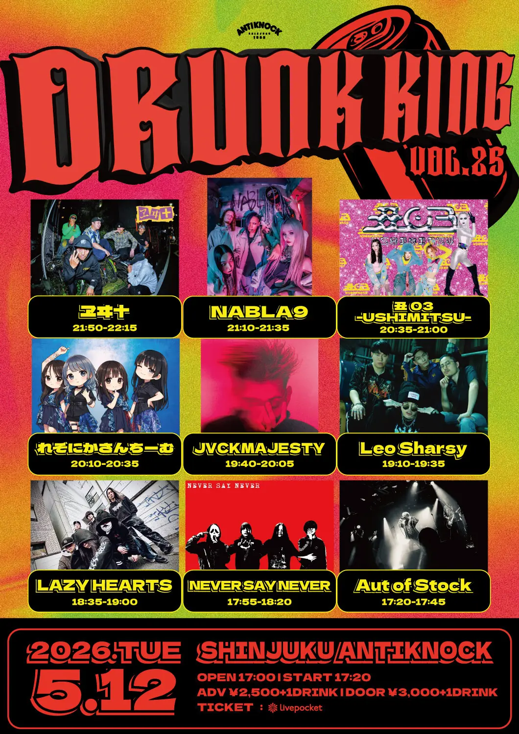 出演者 ヱヰ十 / Leo Sharsy / Aut of Stock / JVCKMAJESTY / NEVER SAY NEVER / LAZY HEARTS / NABLA9 / 丑03-USHIMITSU- / 滄茫RESONICA / れぞにかさんちーむ
