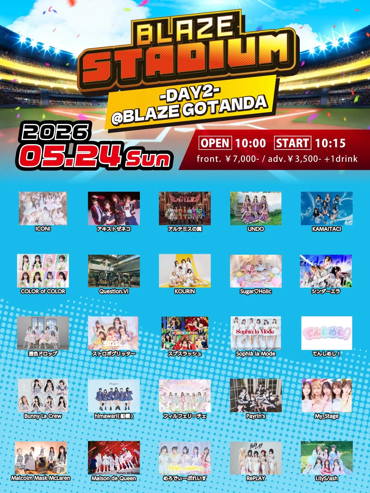 出演者 透色ドロップ / アストレイル / COLOR of COLOR / zanka / 9DayzGlitchClubTokyo / 鳴ル神 / iCON! / アキストゼネコ / AZ-ON / 雨のち、ハレーション / UNDO / il pleut / KissBee / kimikara(きみから) / KOURiN / Sugar♡Holic / スプスラッシュ / Sophià la Mode / Chalca / NEFRALISE / buGG / Payrin's / ポラライト / My_Stage / Malcolm Mask McLaren / めろでぃーぷれいす / 夢みるアドレセンス / RePLAY / じゅじゅ