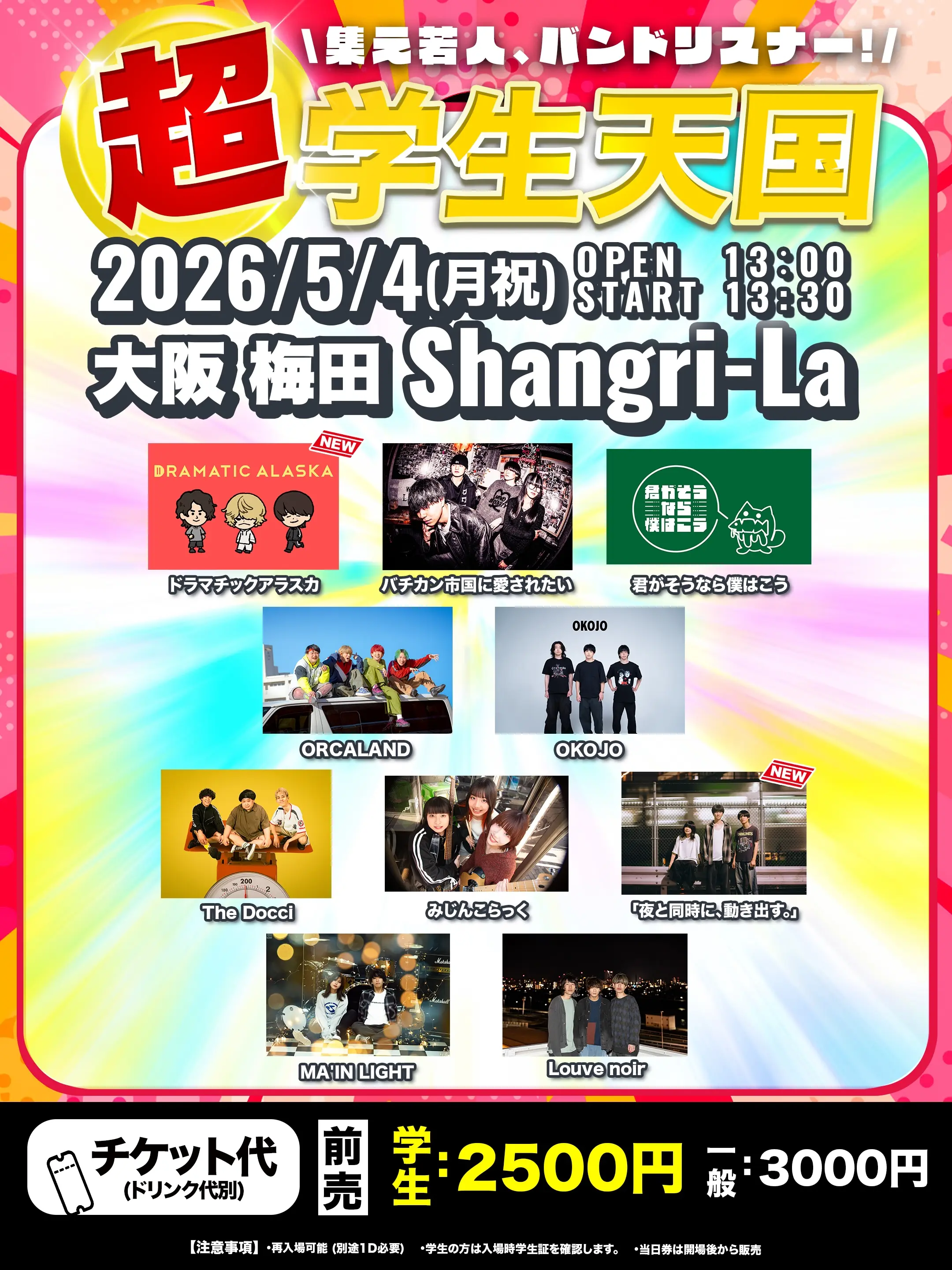 出演者 バチカン市国に愛されたい / 君がそうなら僕はこう / ORCALAND / OKOJO / The Docci / みじんこらっく / Louve noir / MA'IN LIGHT / ドラマチックアラスカ / 「夜と同時に、動き出す」
