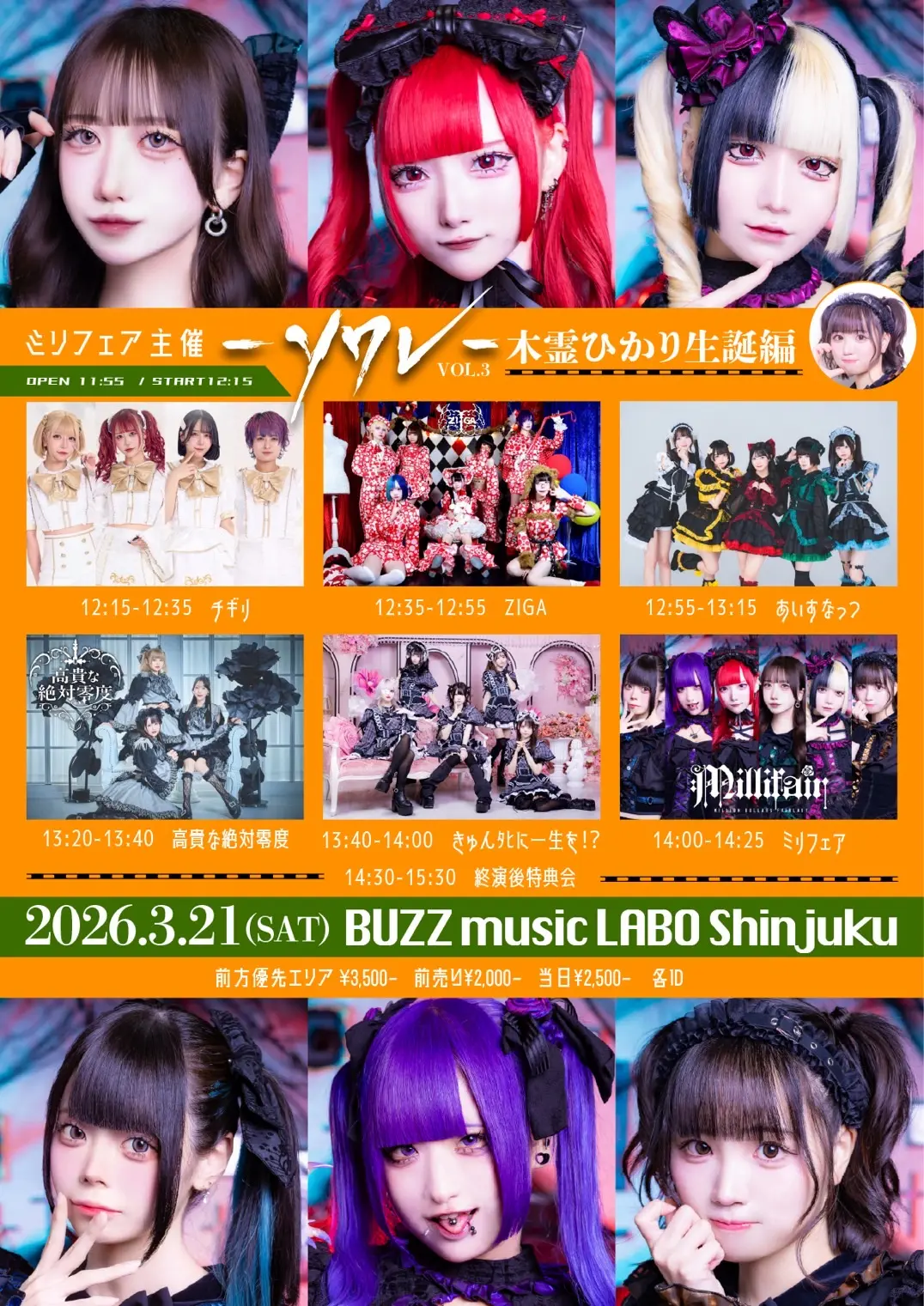 出演者 ミリフェア / きゅんタヒに一生を⁉︎ / 高貴な絶対零度 / あいすなっつ / ZIGA / チギリ