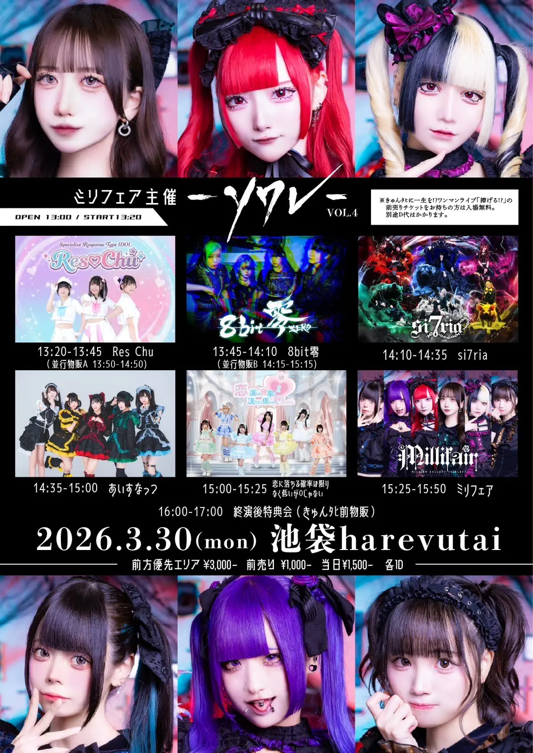 出演者 ミリフェア / 恋に落ちる確率は限りなく低いが0じゃない / あいすなっつ / Si7ria / 8bit零 / Res Chu