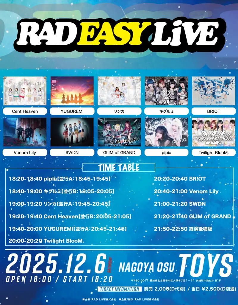出演者 Cent Heaven / リンカ / Venom Lily / キグルミ / GLIM of GRAND / BR!OT / pipia / SWDN / YUGUREMI / Twilight BlooM.
