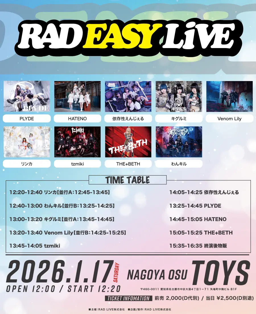 出演者 依存性えんじぇる / Venom Lily / わんキル / HATENO / リンカ / キグルミ / tzmiki / PLYDE / THE+BETH