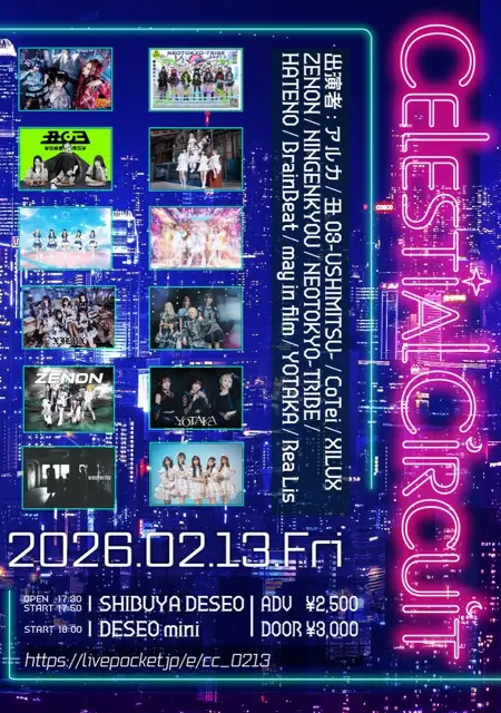 出演者 CoTei / NINGENKYOU / ZENON / YOTAKA / アルカ / 丑03-USHIMITSU- / XILUX / NEO TOKYO TRIBE / HATENO / BrainBeat / may in film / Rea Lis
