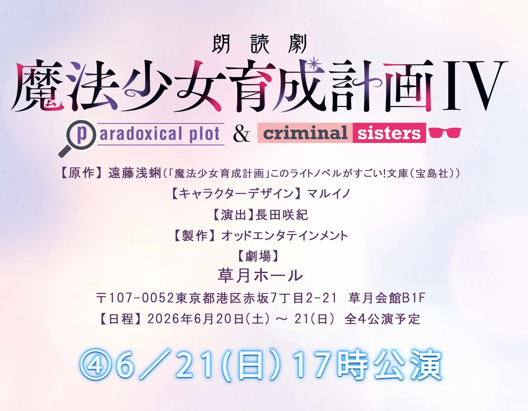 朗読劇「魔法少女育成計画Ⅳ」【6/21(日)17:00~】