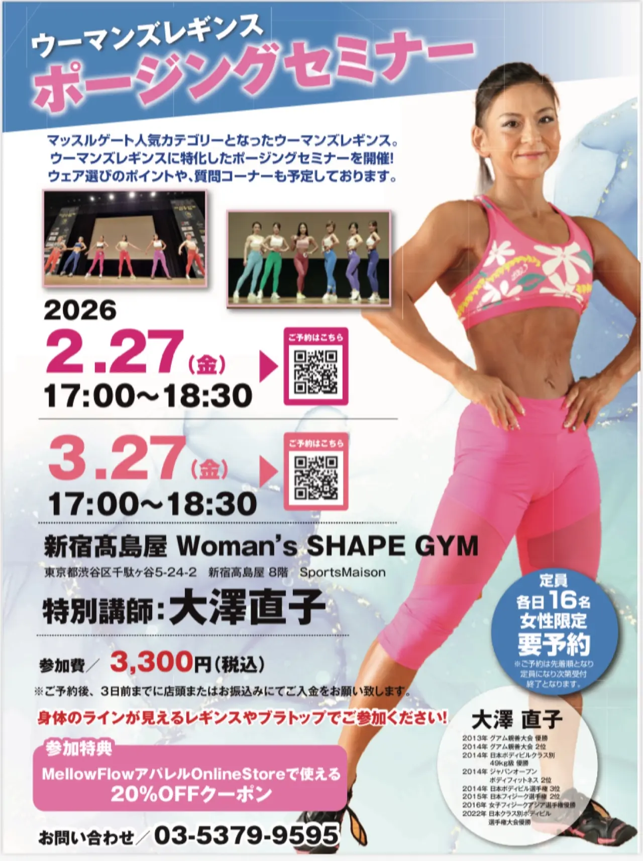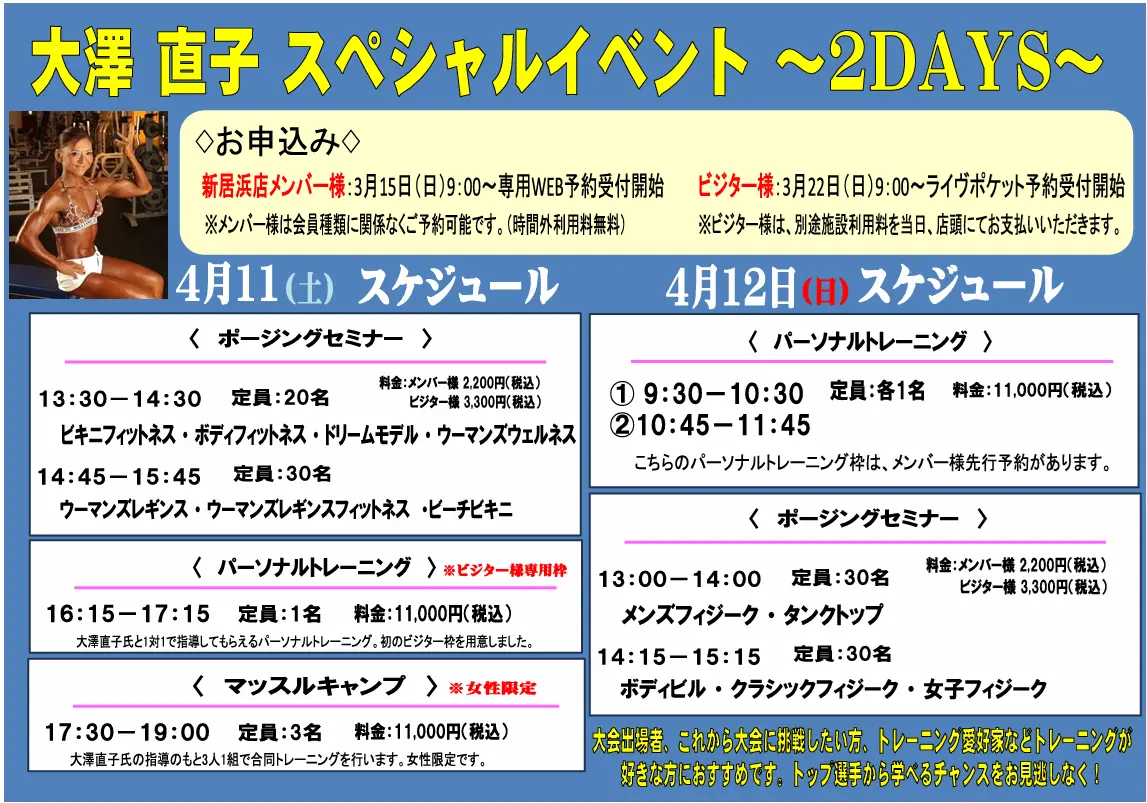 大澤直子スペシャルイベント(マッスルキャンプ、ポージングセミナー、出張パーソナル)