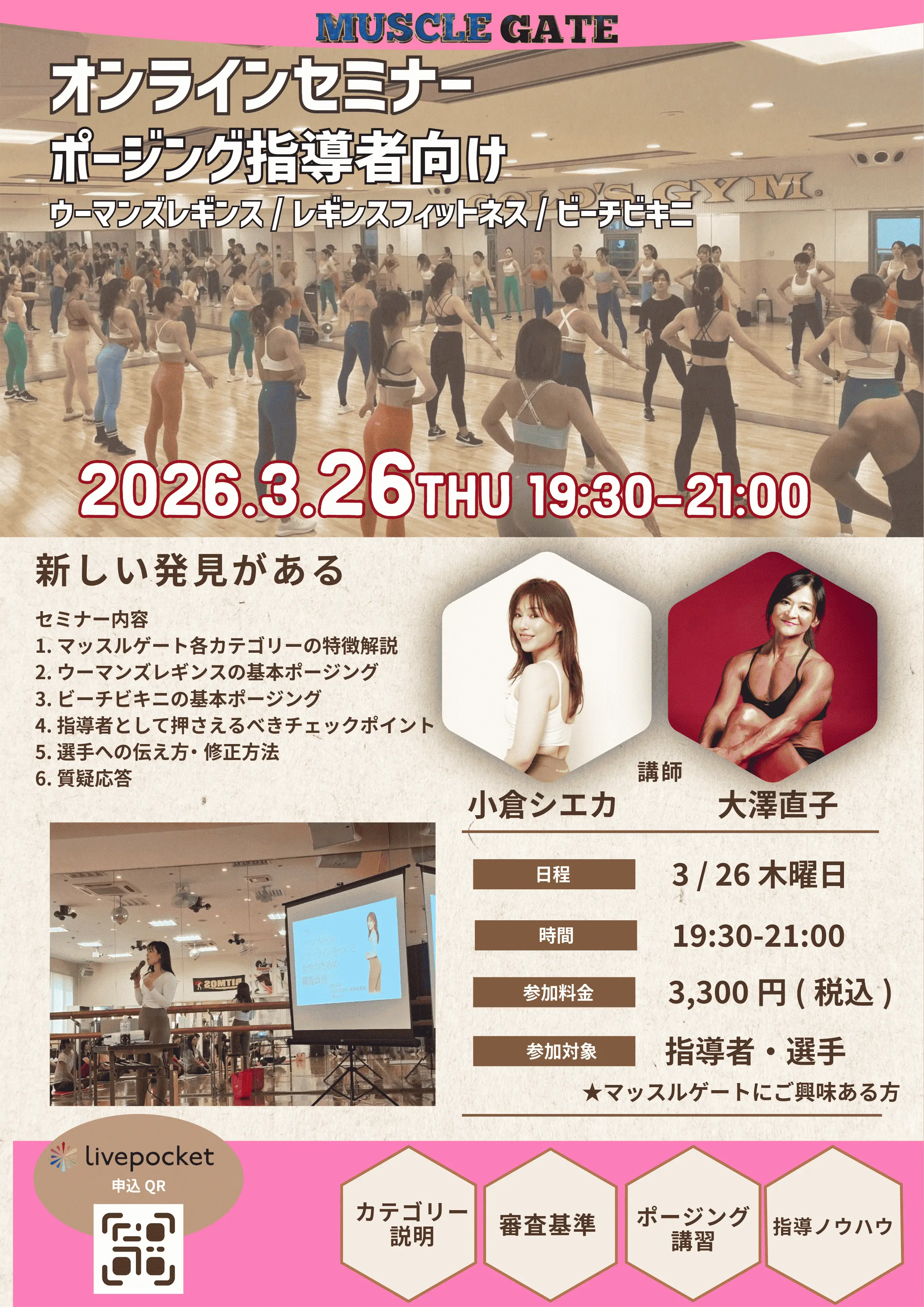 【ポージング指導者向けオンラインセミナー】~MUSCLE GATE~