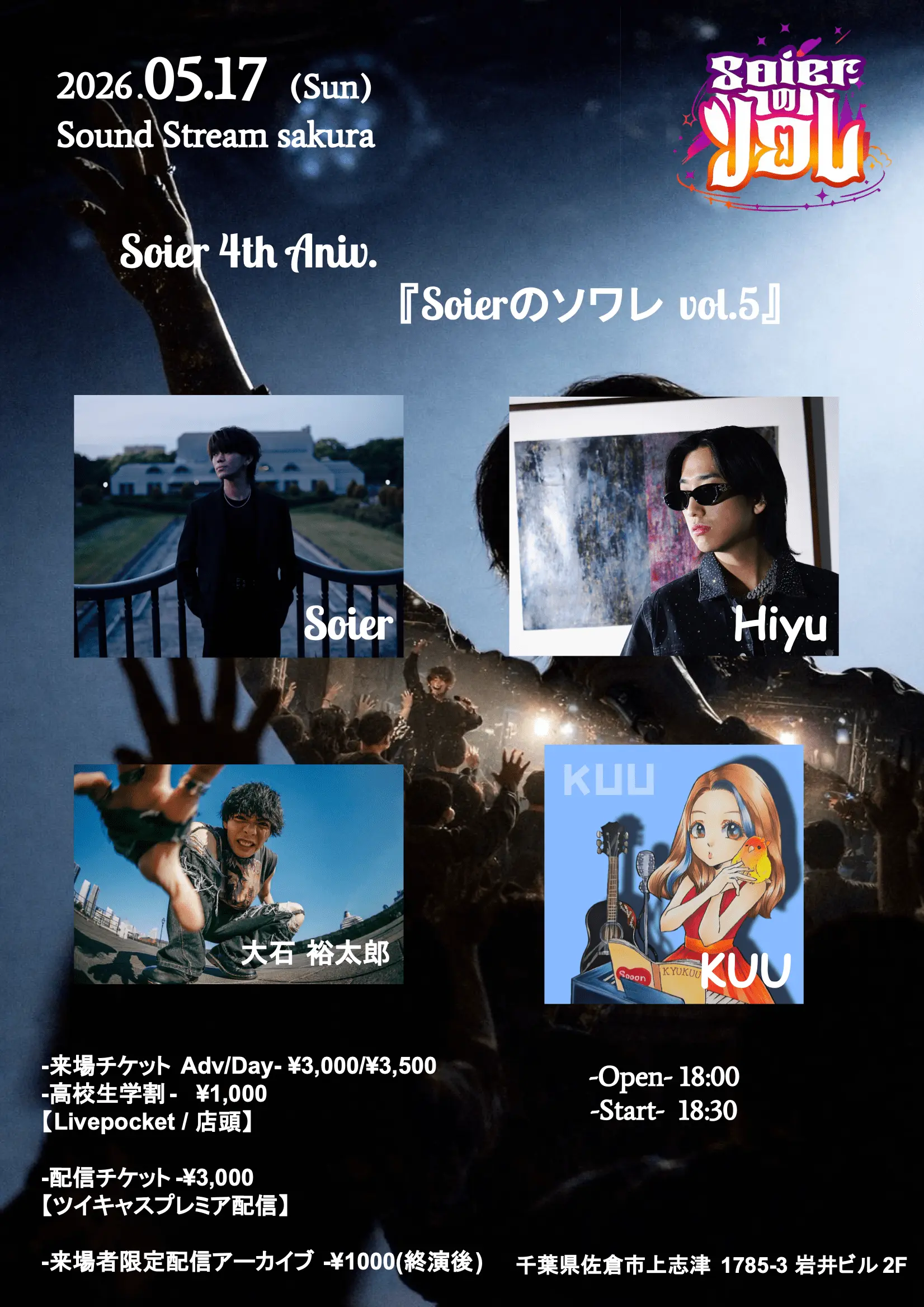 5/17(Sun) Sound Stream sakura Soier 4th Aniv. SoierのソワレVol.5