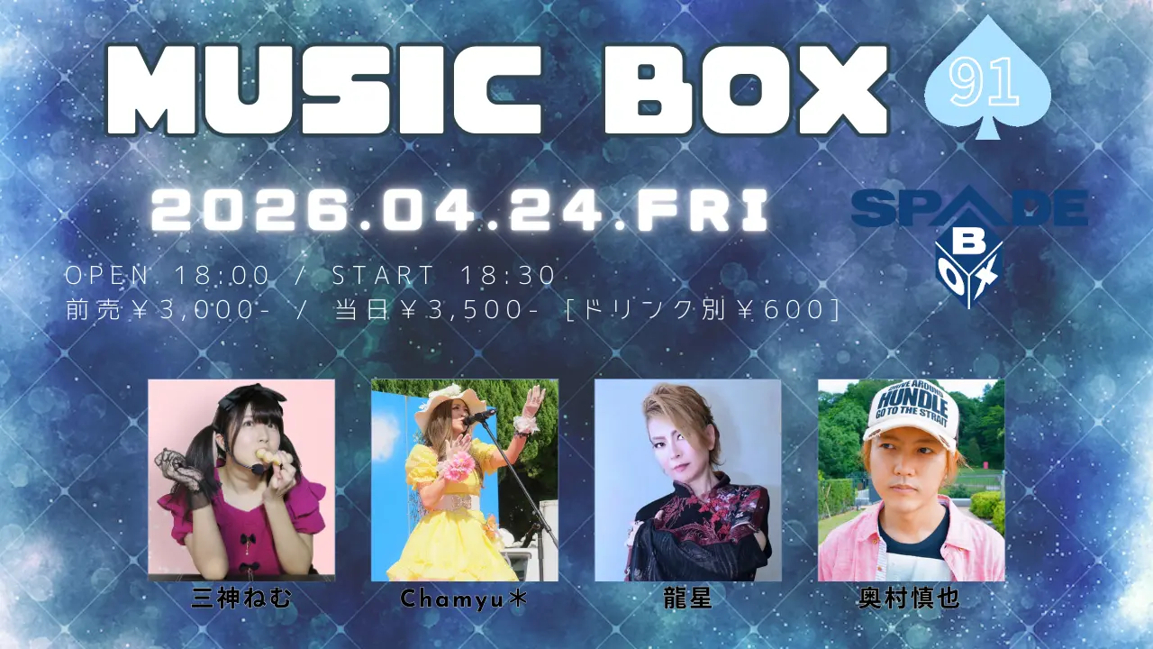 出演者 三神ねむ / Chamyu* / 龍星 / 奥村慎也
