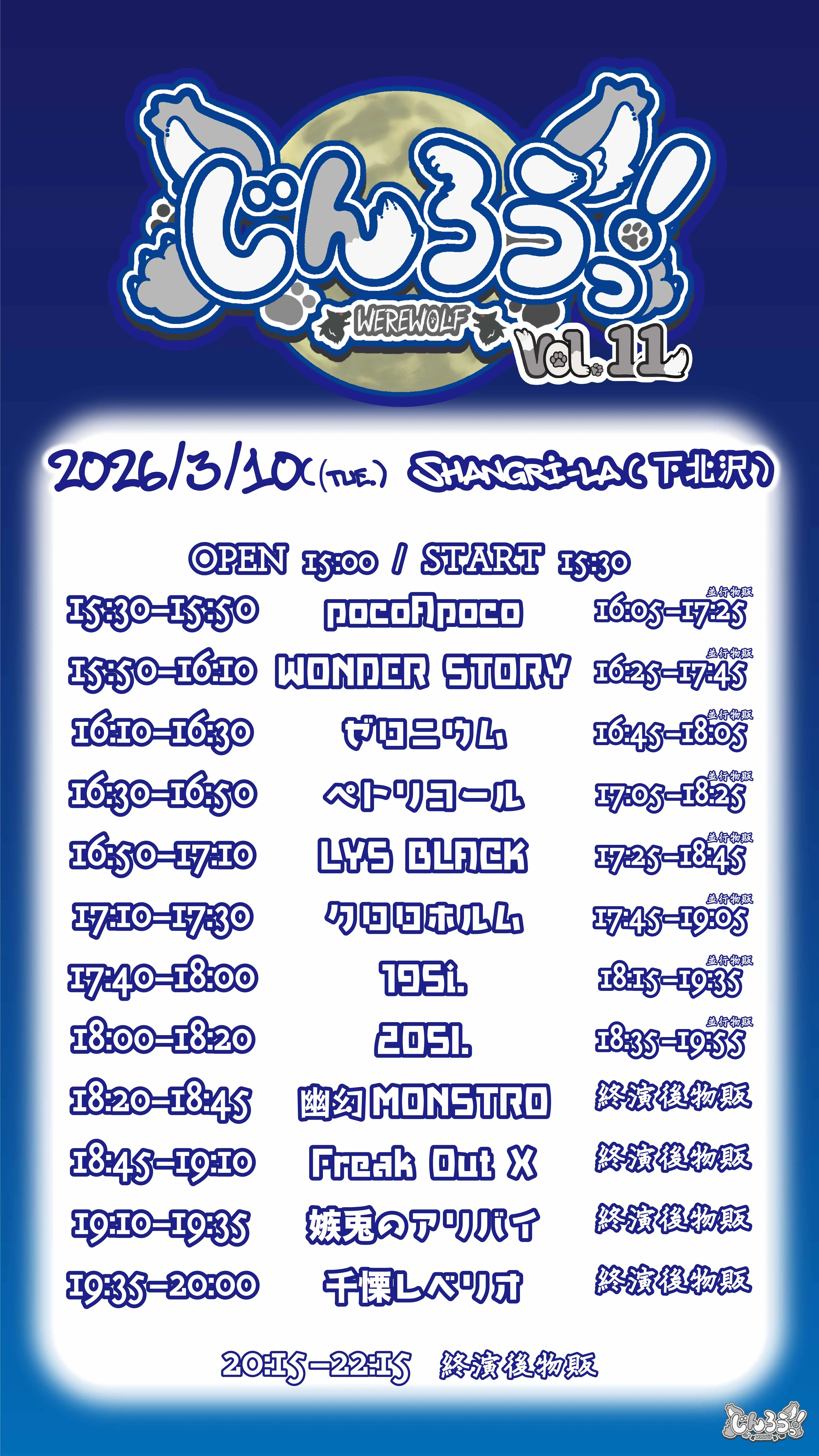 出演者 嫉兎のアリバイ / Freak Out X / 千慄レベリオ / 20SI. / 19Si. / 幽幻MONSTRO / クロロホルム / LYS BLACK / ペトリコール / ゼロニウム / WONDER STORY / pocoApoco