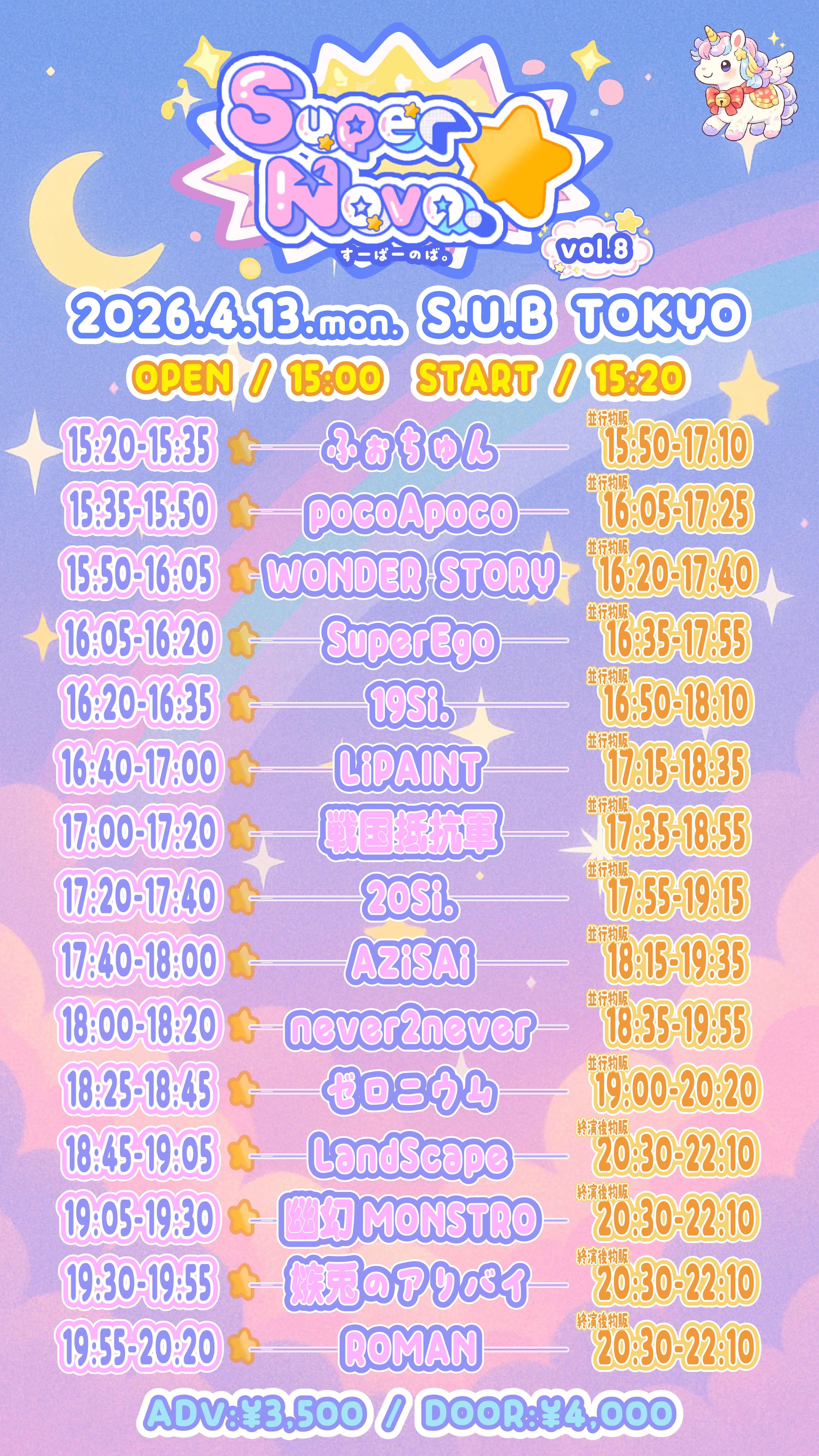 出演者 20SI. / ふぉちゅん / 19Si. / pocoApoco / WONDER STORY / SuperEgo / LiPAINT / 戦国抵抗軍 / AZiSAi / never2never / ゼロニウム / LandScape / 幽幻MONSTRO / 嫉兎のアリバイ / ROMAN