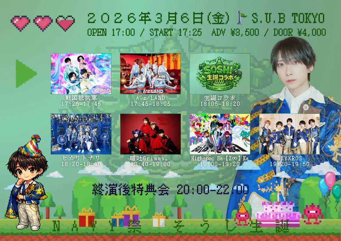 出演者 少年秘密俱楽部 / 山本亮太 / UNIVER23 / A'z LAND / LiPAINT / Find=i / BAGUUU! / 戦国抵抗軍 / RAVEN / 永井瑠聖(tasty rose) / YoiN / piXent / My SnoozzZ / Shun