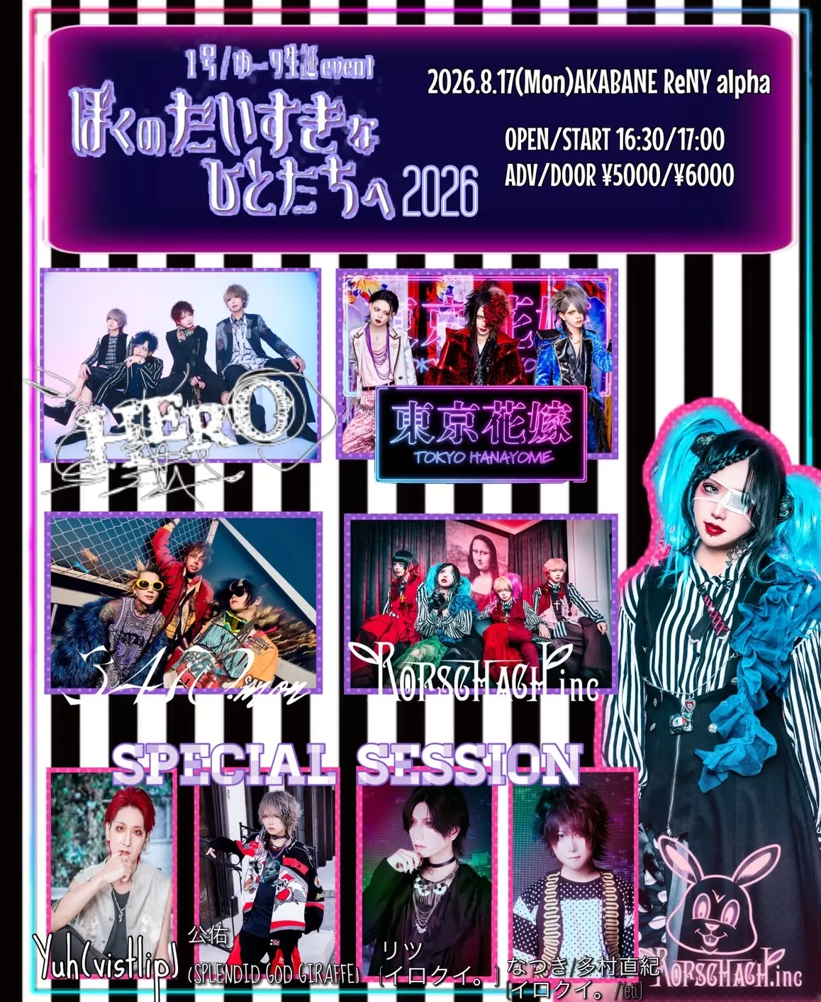 Bチケット:8月17日(月) : 赤羽ReNY alpha: Rorschach.inc presents1号生誕主催EVENT "ぼくのだいすきなひとたちへ2026"