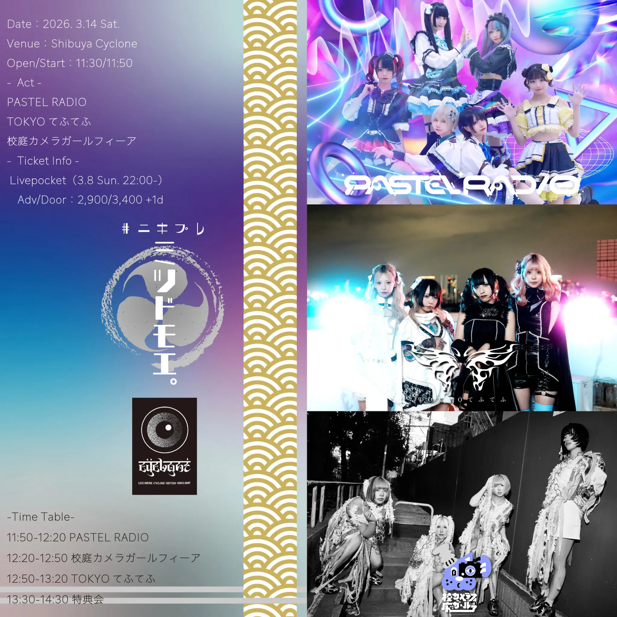 出演者 PASTEL RADIO / TOKYOてふてふ / 校庭カメラガールフィーア