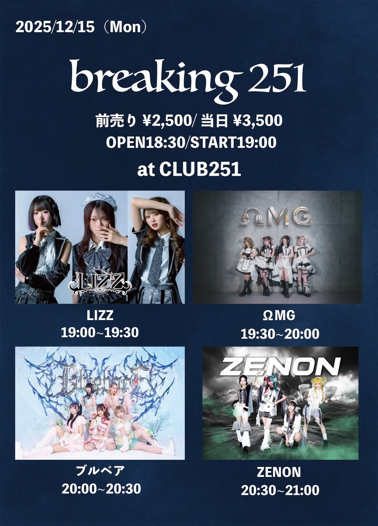 出演者 ZENON / ブルべア / LIZZ / ΩMG