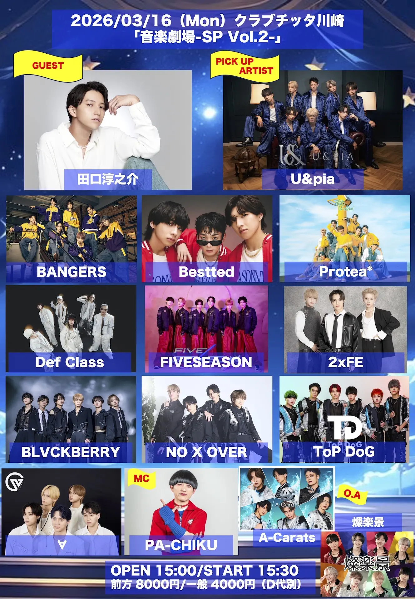出演者 田口淳之介 / U&pia / Def Class / Bestted / Protea* / 2xFE / FIVESEASON / BLVCKBERRY / NO X OVER / ∀ / ToP DoG / 燦楽景 / PA-CHIKU / A-Carats / BANGERS