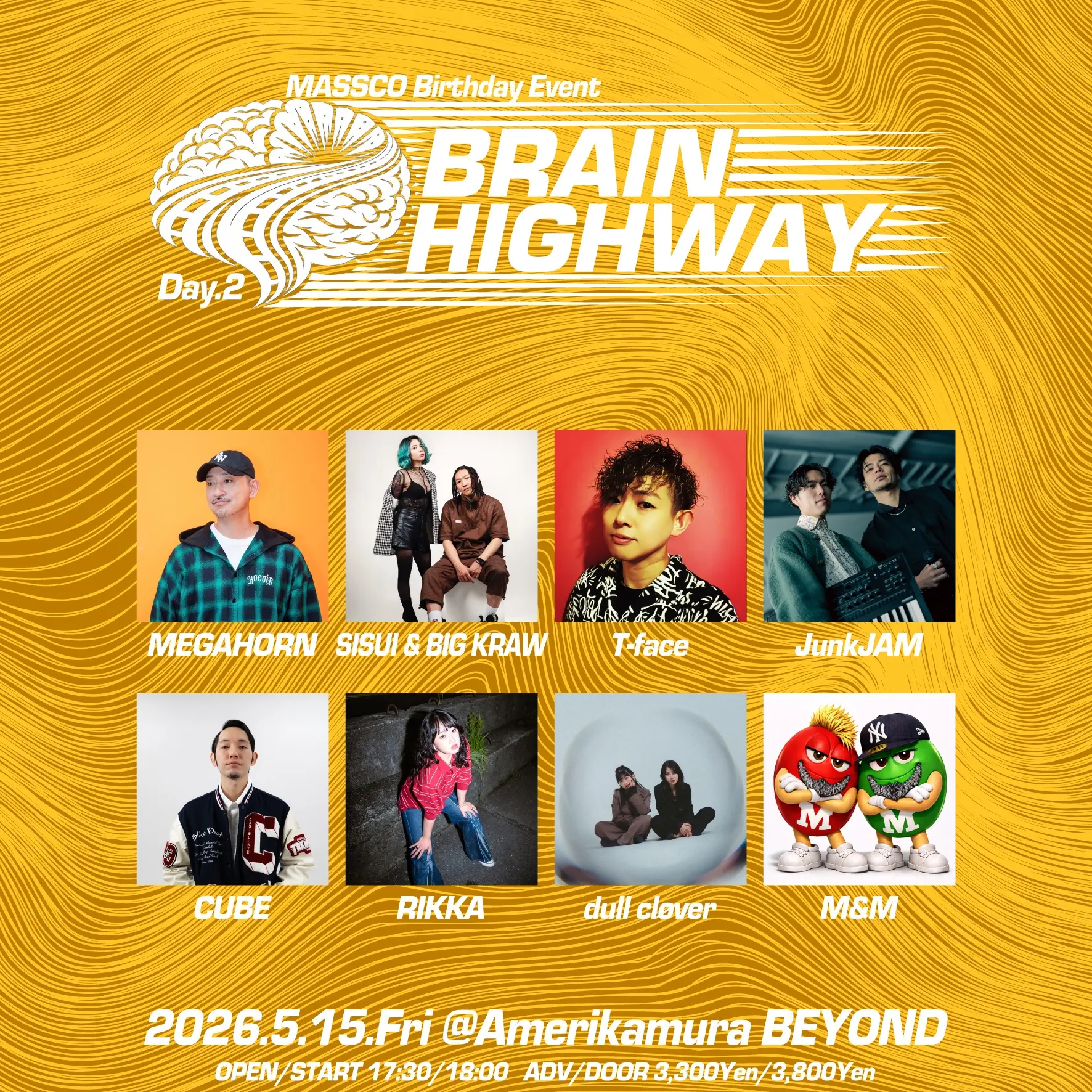 出演者 MEGAHORN / SISUI & BIG KRAW / T-face / JunkJAM / CUBE / RIKKA / dull cløver / M&M