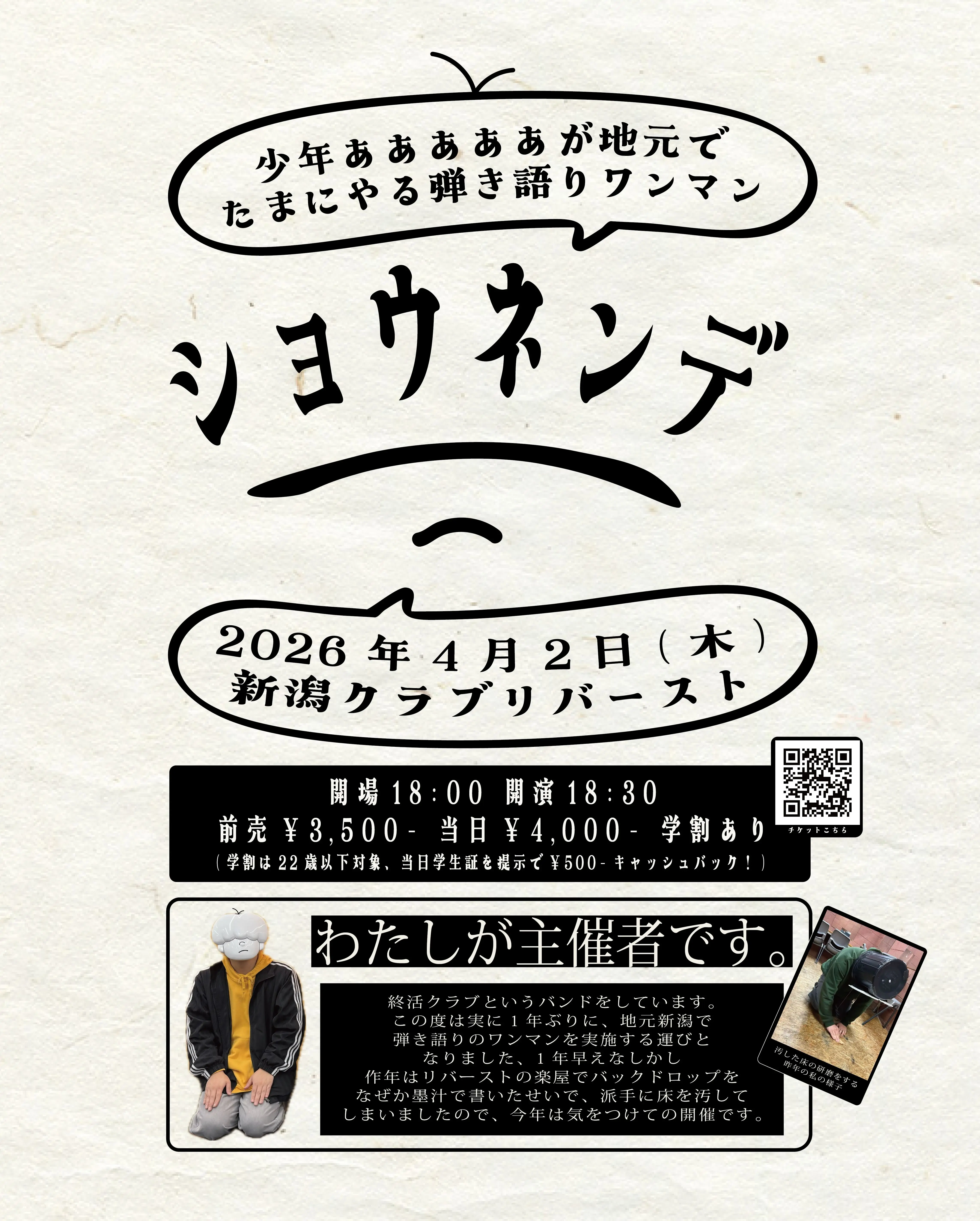 少年あああああが地元でたまにやる弾き語りワンマン ショウネンデーーーー