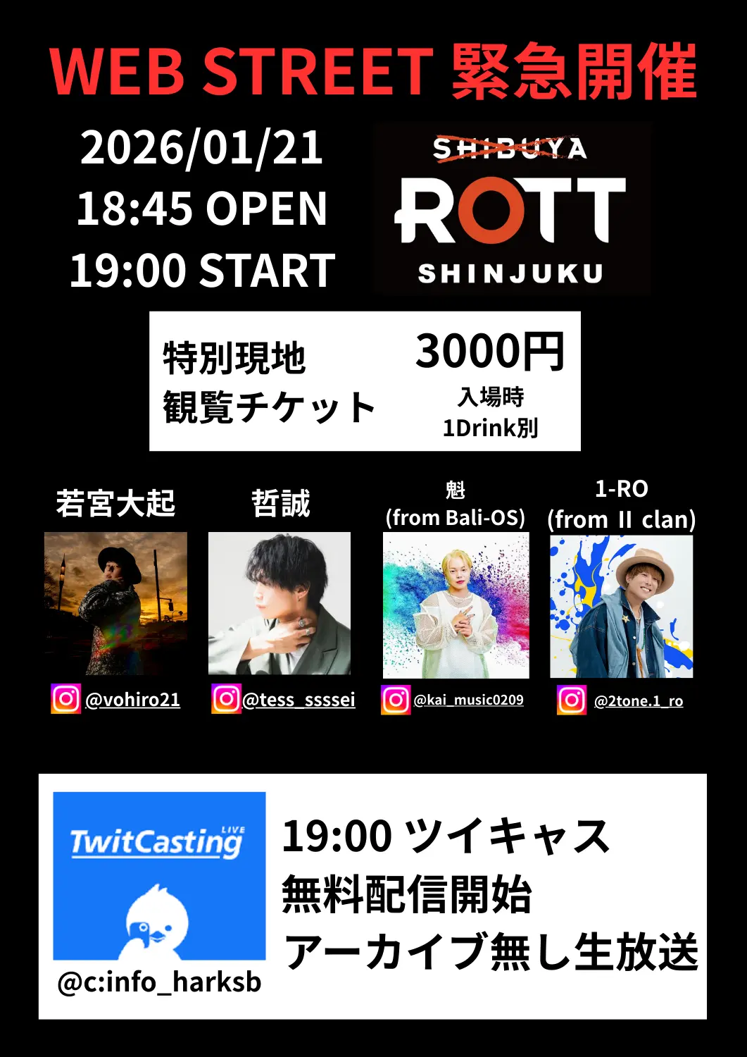 出演者 哲誠 / 若宮大起 / 魁(from Bali-OS) / 1-RO(from Ⅱ tone clan) / SERIKA