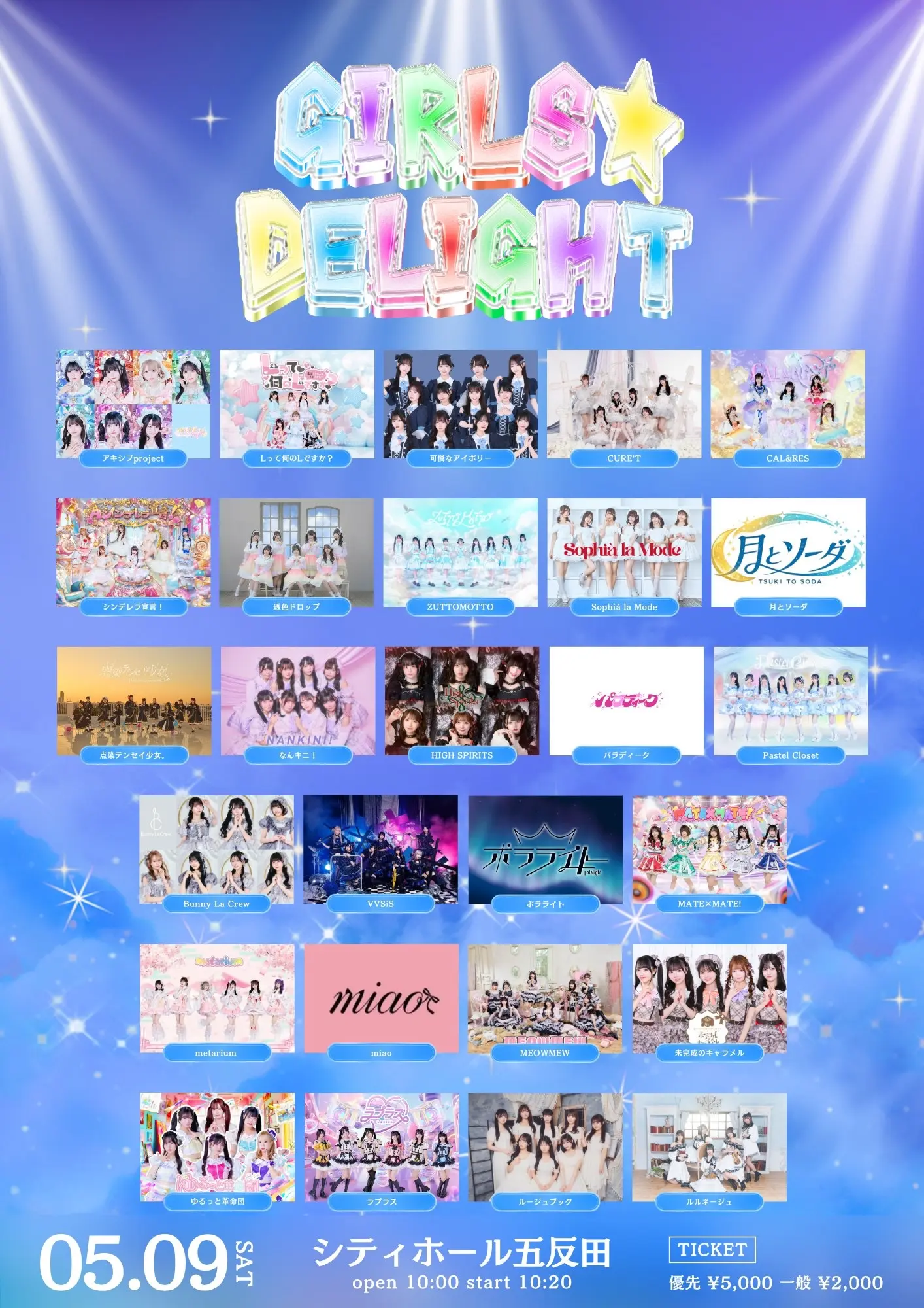 出演者 HIGH SPIRITS / Lって何のLですか? / Sophià la Mode / MEOWMEW / MATE×MATE! / アキシブproject / 可憐なアイボリー / CURE'T / CAL&RES / 透色ドロップ / ZUTTOMOTTO / 月とソーダ / 点染テンセイ少女。 / なんキニ! / パラディーク / Pastel Closet / Bunny La Crew / VVSiS / ポラライト / metarium / miao / 未完成のキャラメル / ゆるっと革命団 / ラプラス / ルージュブック / ルルネージュ / シンデレラ宣言!