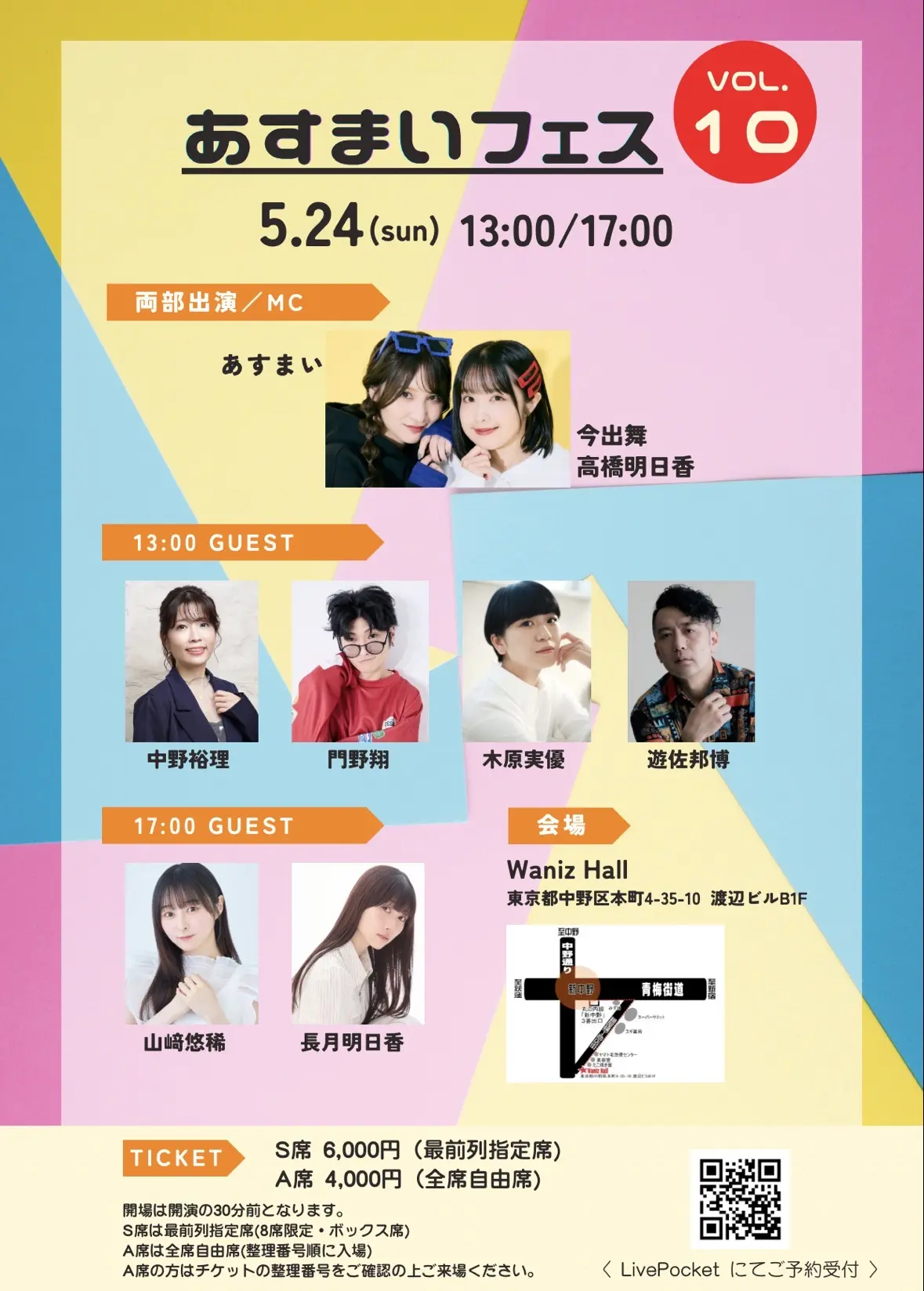 出演者 あすまい / 高橋明日香 / 今出舞 / 木原実優 / 中野裕理 / 門野翔 / 遊佐邦博 / 山﨑悠稀 / 長月明日香