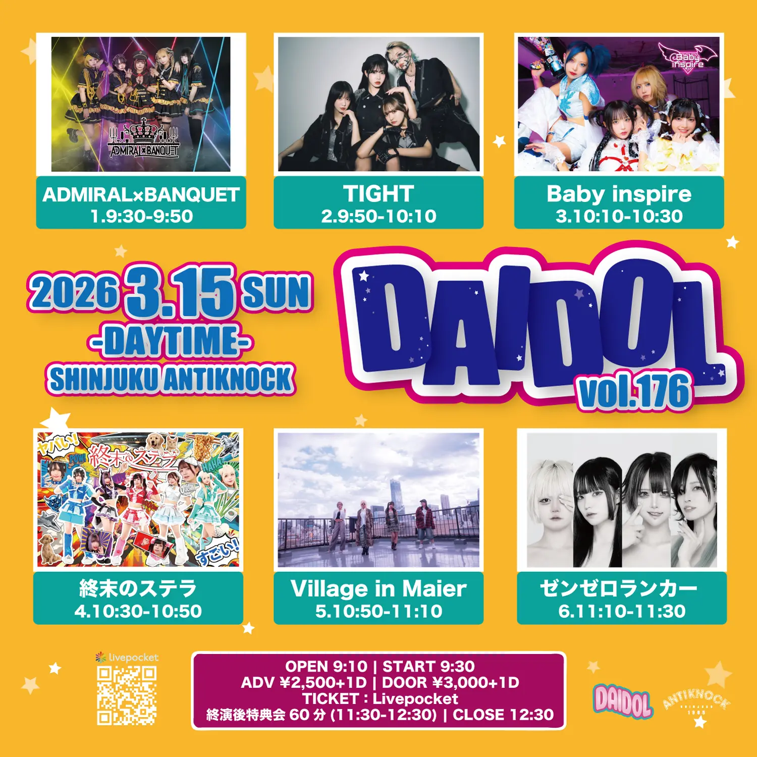 出演者 TIGHT / 終末のステラ / ゼンゼロランカー / ADMIRAL×BANQUET / Village in Maier / Baby inspire