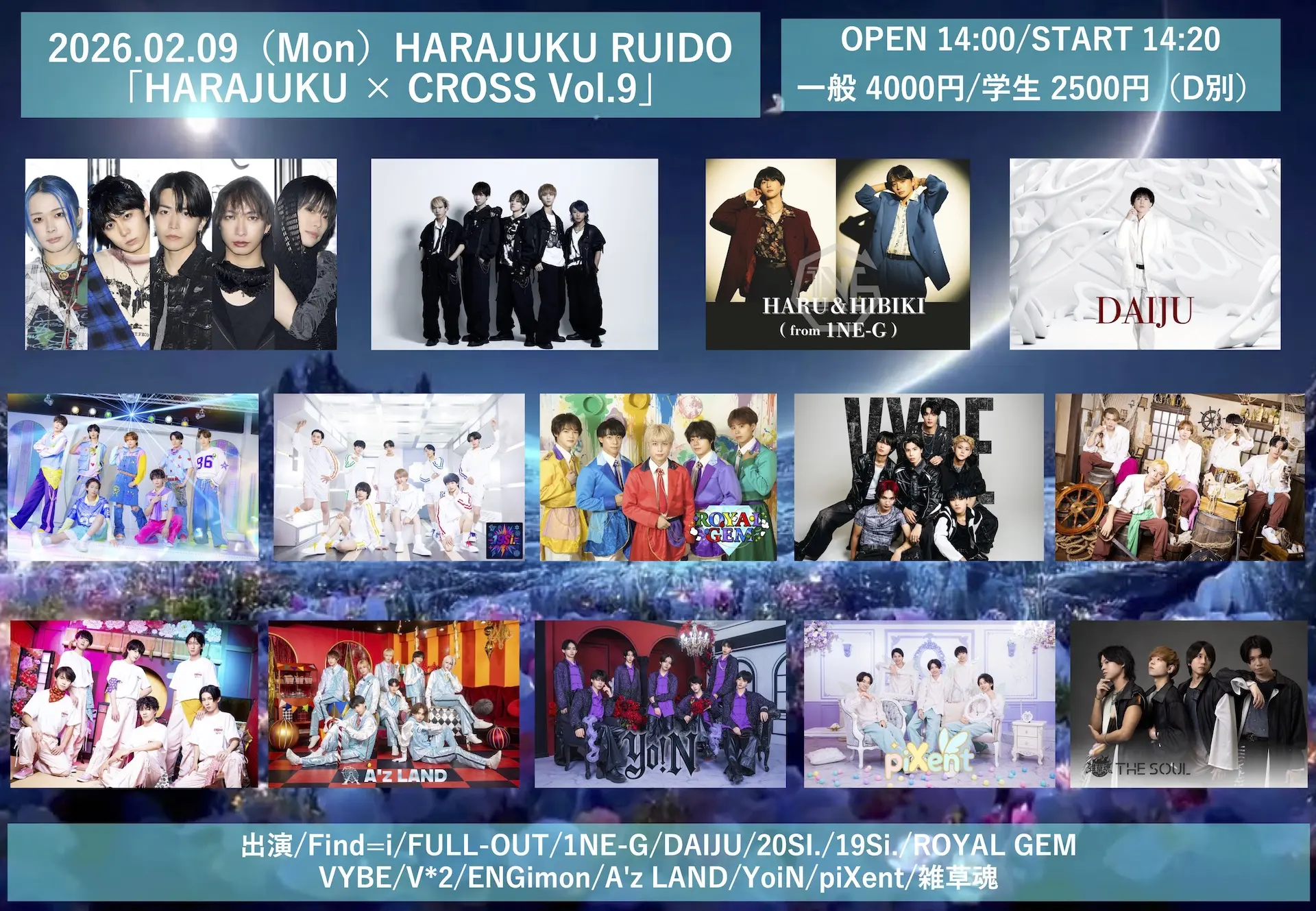 出演者 1NE-G / V*2 / ENGimon / VYBE / Find=i / FULL-OUT / 20SI. / 19Si. / ROYAL GEM / DAIJU / A'z LAND / YoiN / piXent / 雑草魂