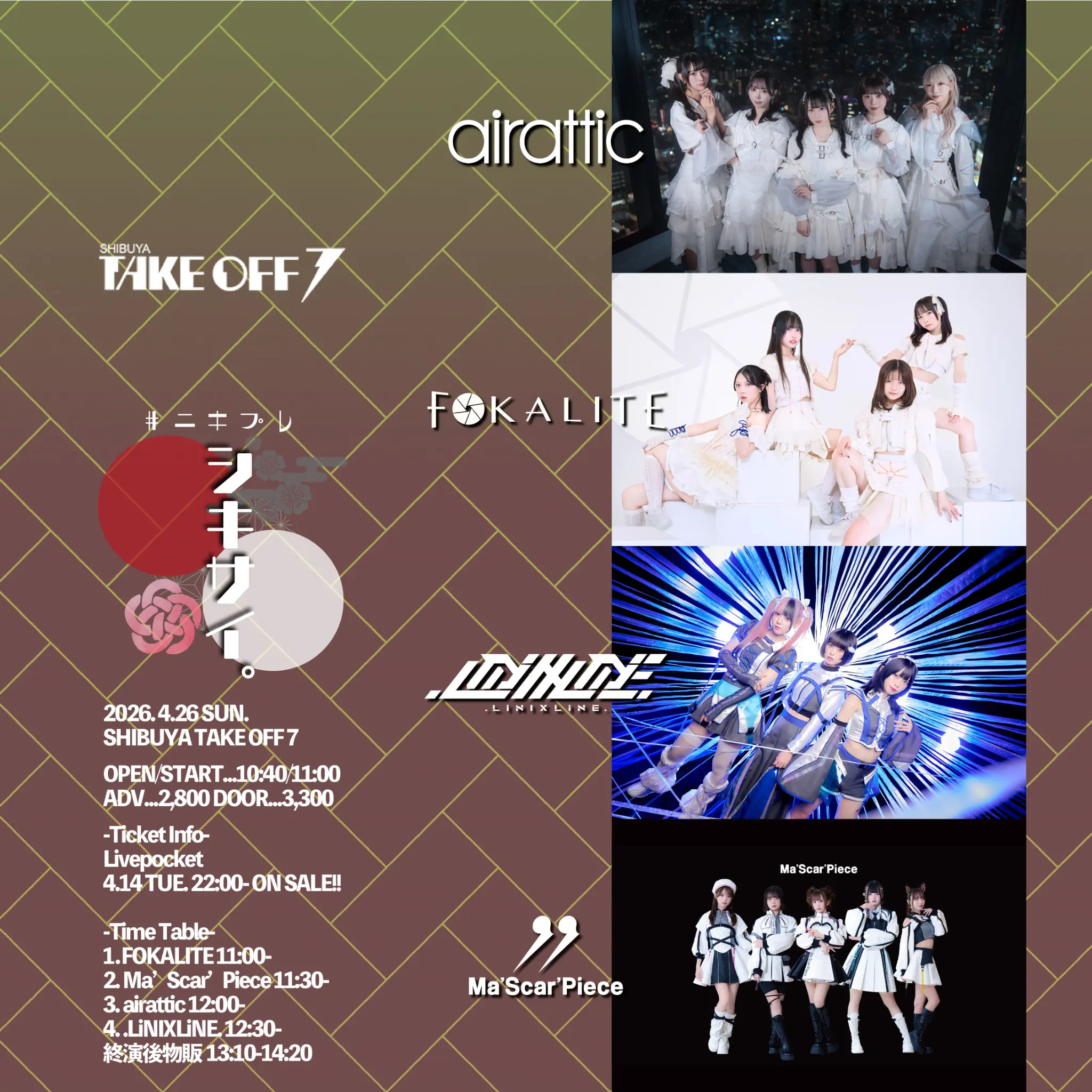 出演者 .LiNIXLiNE. / FOKALITE / Ma'Scar'Piece / airattic