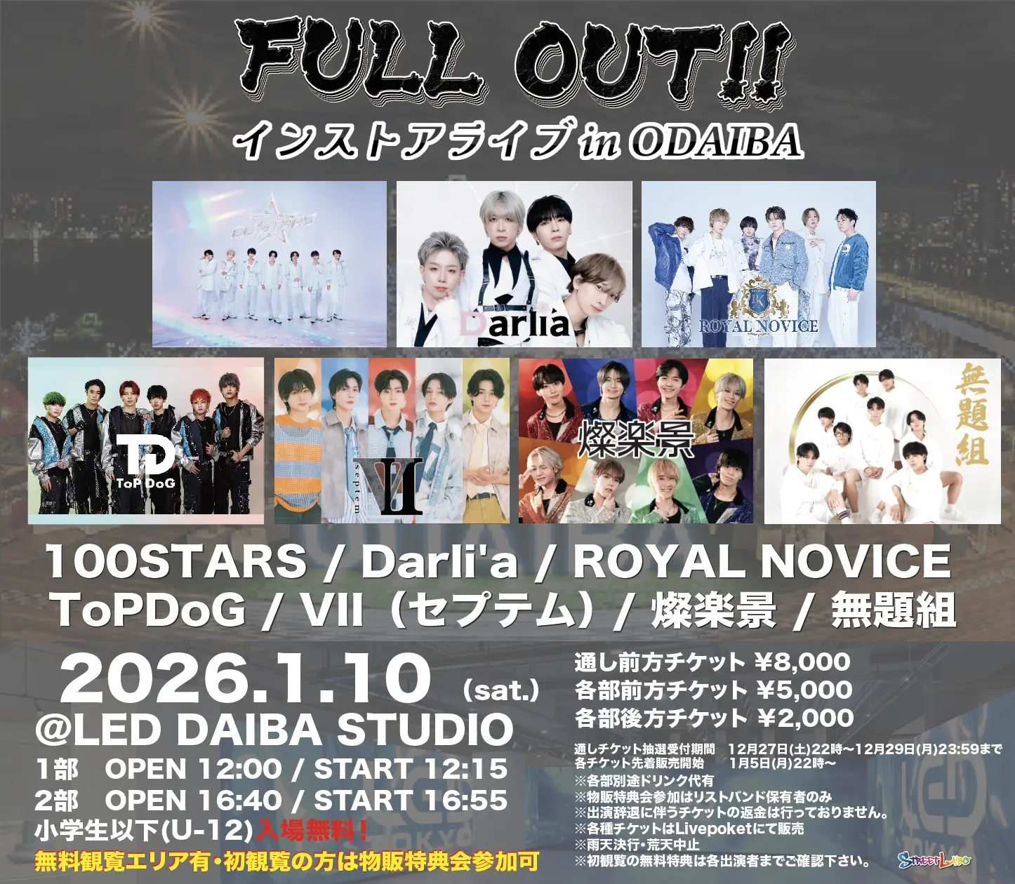 出演者 ROYAL NOVICE / ToPDog / Darli'a / Ⅶ(セプテム) / 燦楽景 / 無題組 / 100STARS