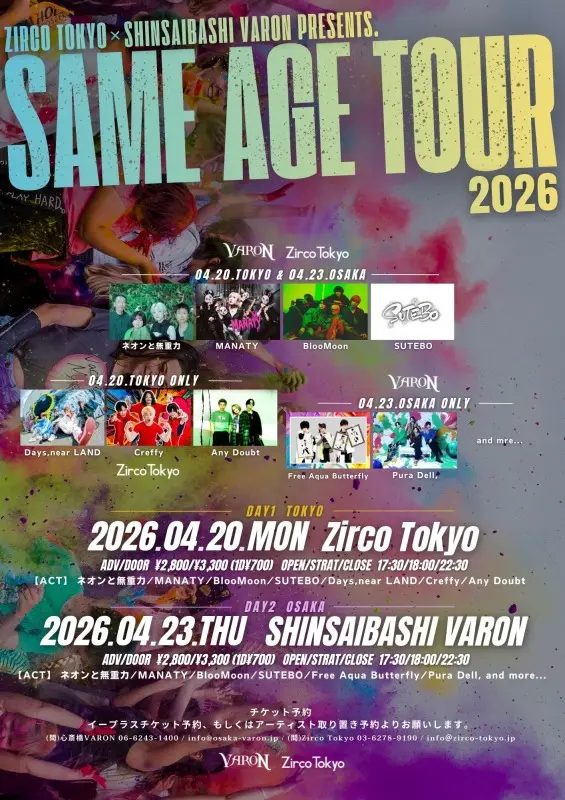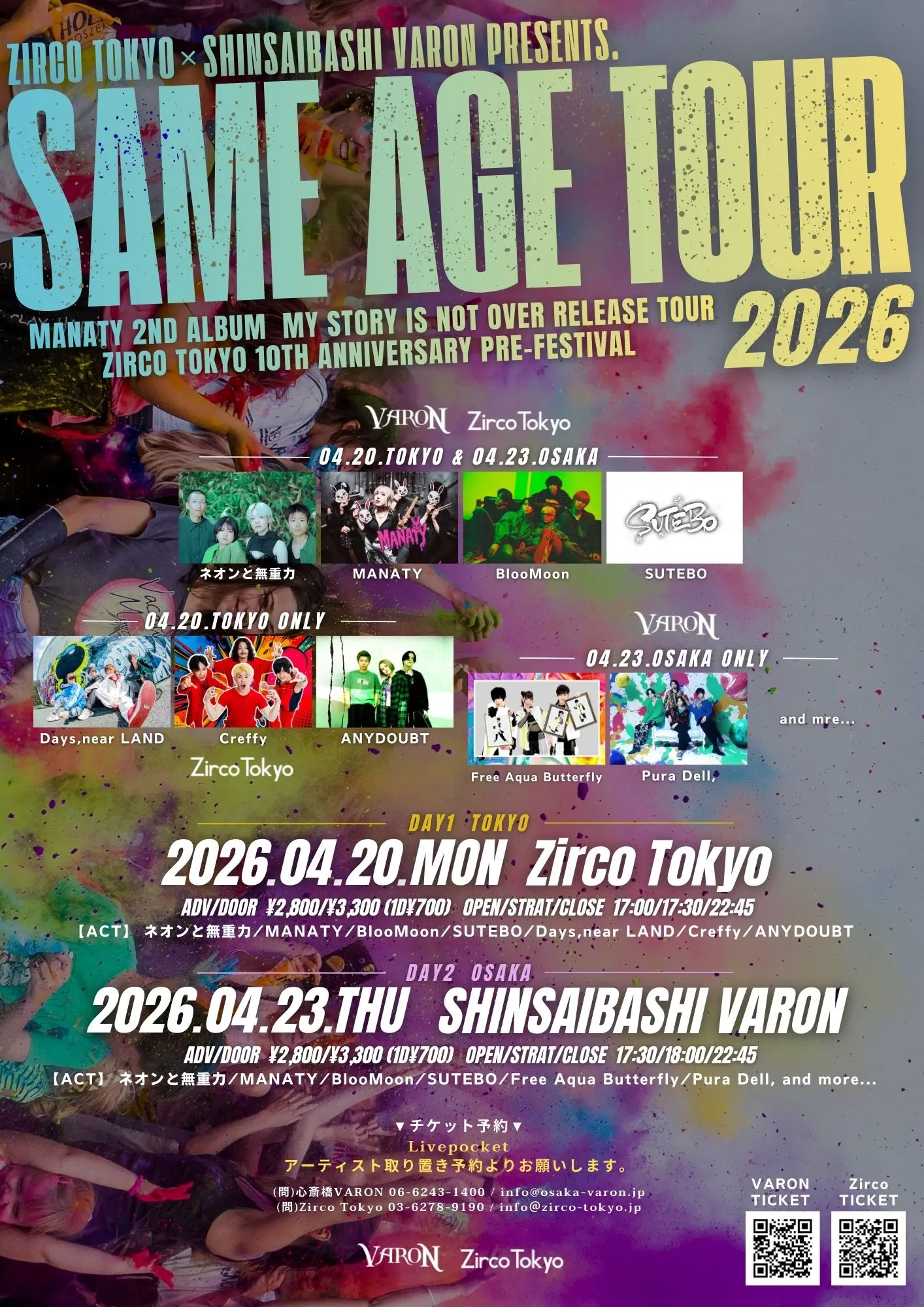 Zirco Tokyo & VARON Presents.”Same Age TOUR 2026” -MANATY MY STORY IS NOT OVER release tour & Zirco Tokyo 10TH Anniversary -