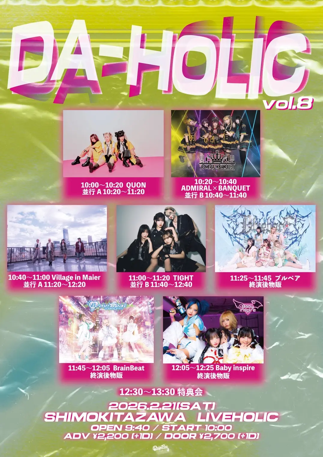 出演者 QUON / ADMIRAL×BANQUET / Village in Maier / TIGHT / ブルベア / BrainBeat / Baby inspire