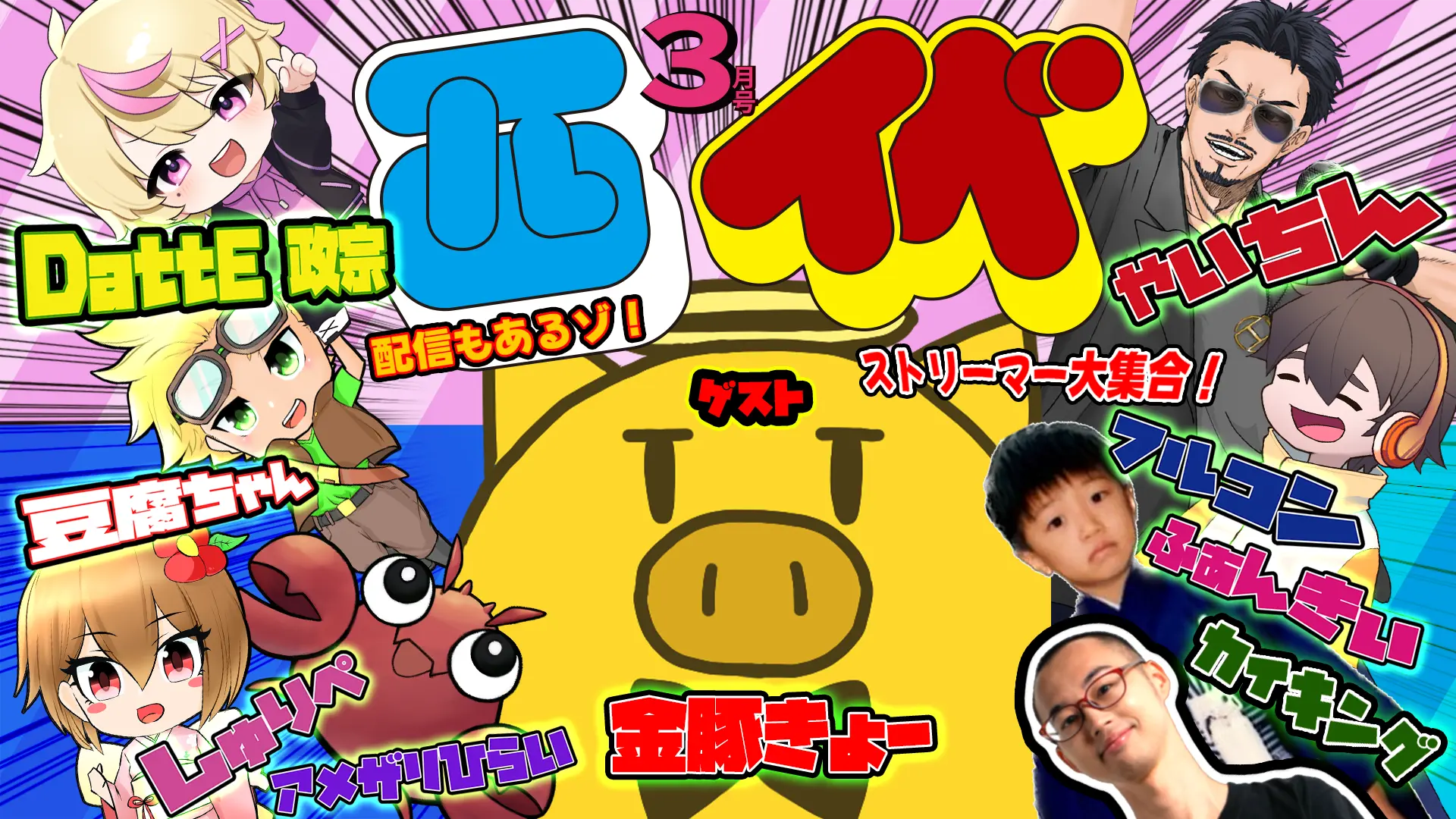 出演者 やいちん / Datte政宗 / 豆腐ちゃん / しゅりぺ / フルコン / ふぁんきぃ / カイキング / 金豚きょー / アメザリ平井