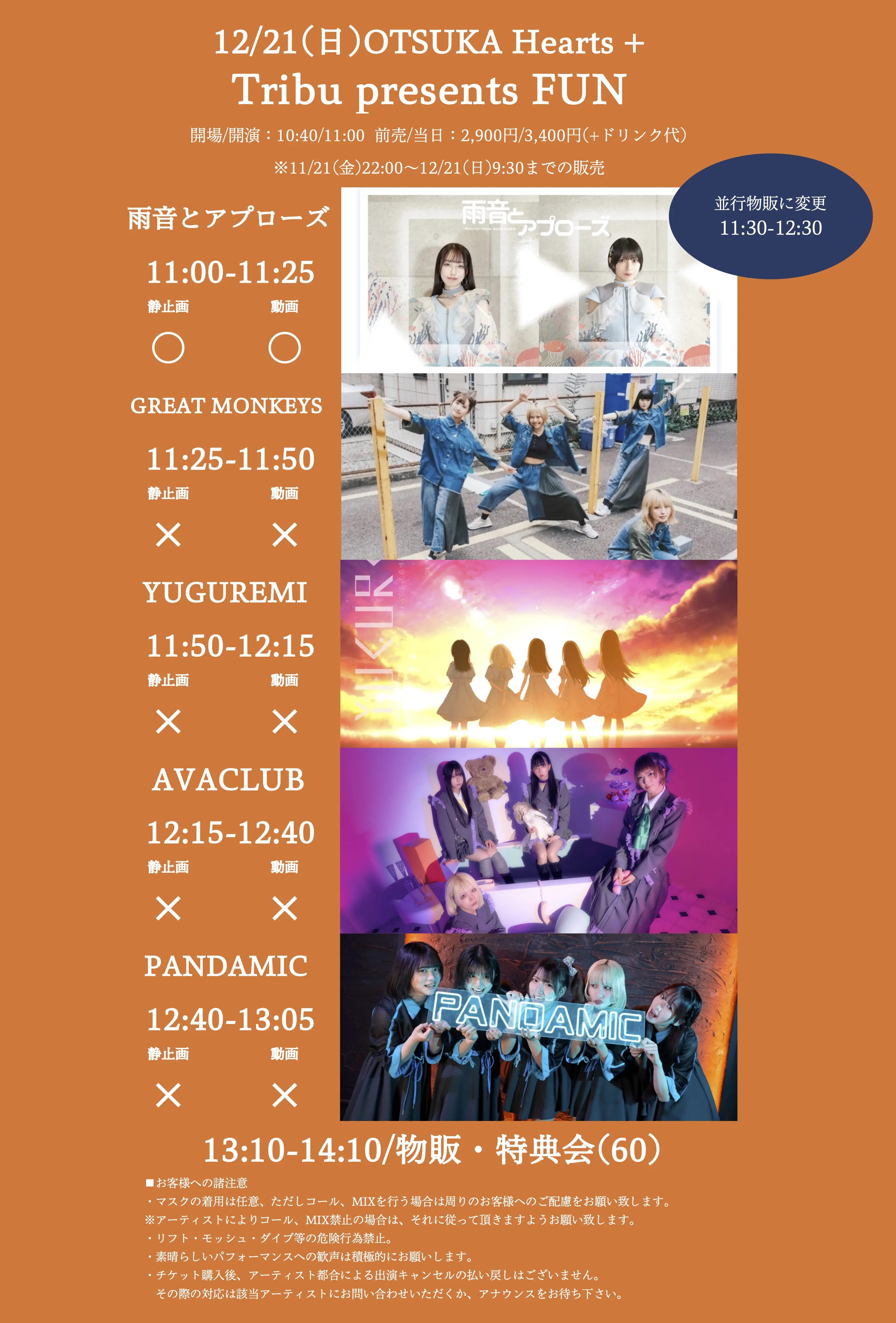 出演者 AVACLUB / il pleut / 夢みるアドレセンス / ponderosa may bloom / NINGENKYOU / XOXO EXTREME