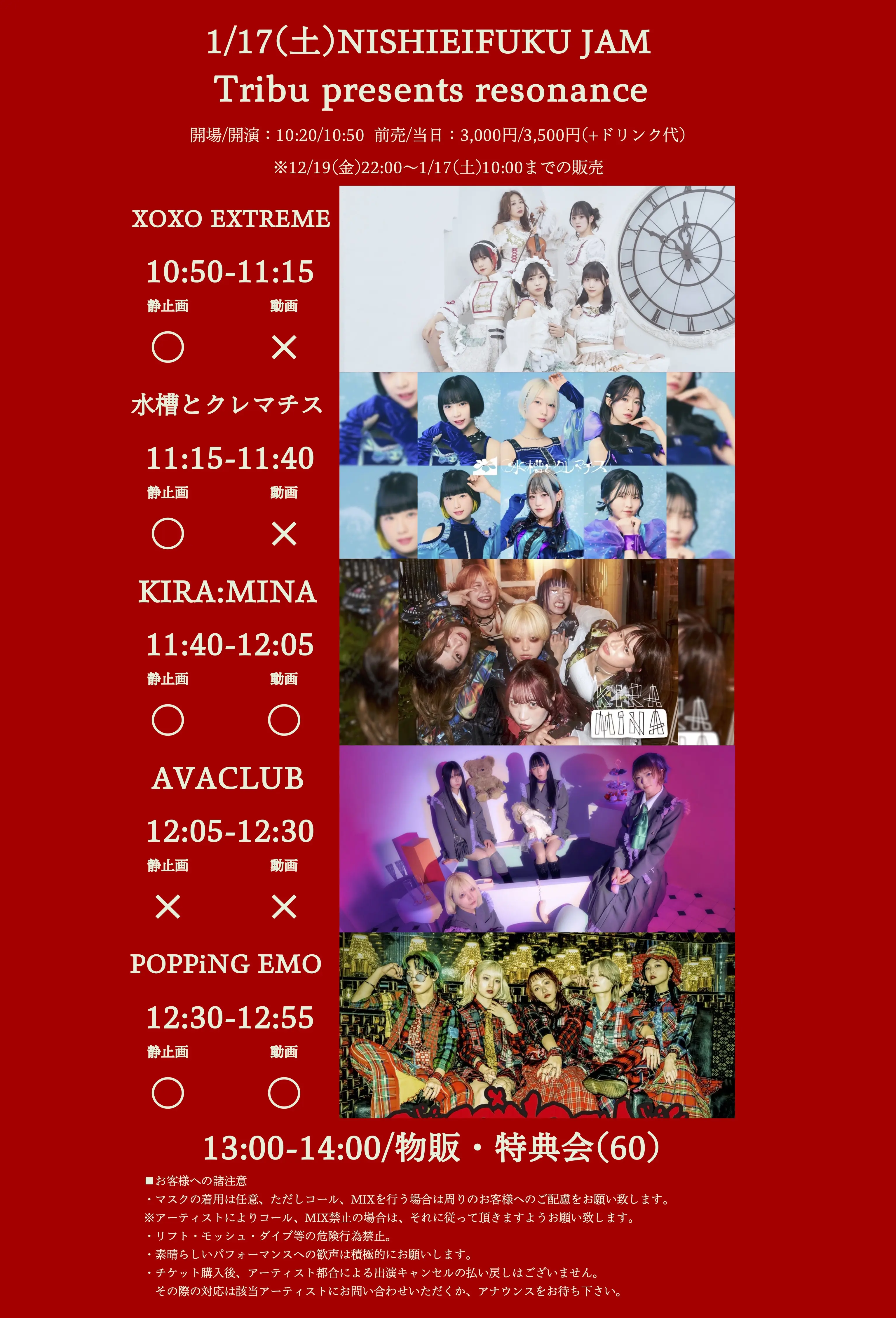 出演者 XOXO EXTREME / 水槽とクレマチス / KIRA:MINA / AVACLUB / POPPiNG EMO