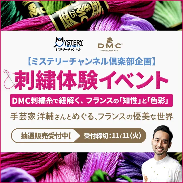 【ミステリーチャンネル倶楽部企画 刺繍体験イベント】開催!DMC刺繍糸で紐解く、フランスの「知性」と「色彩」~手芸家 洋輔さんとめぐる、フランスの優美な世界~