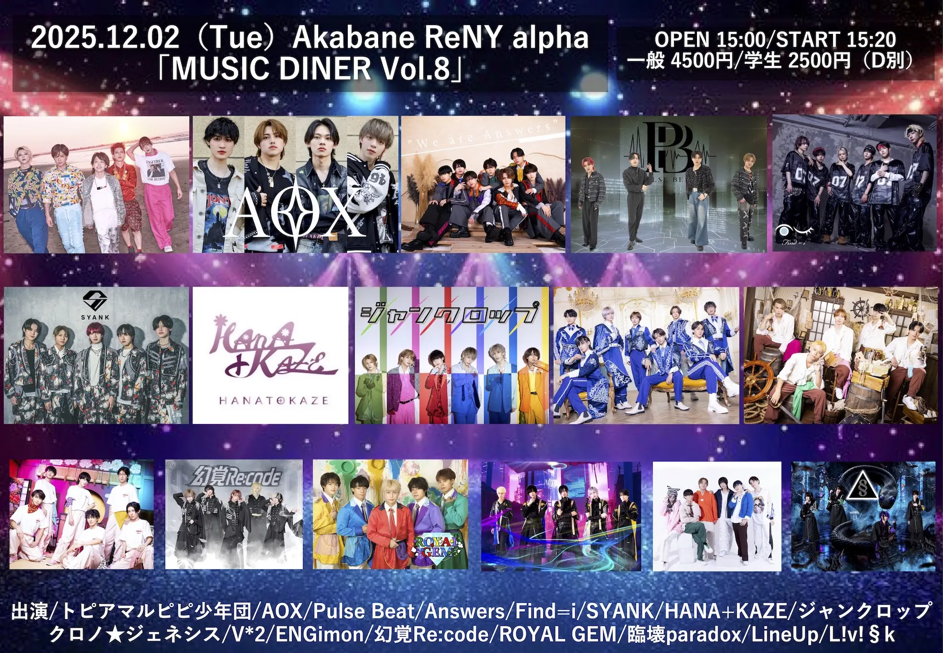 出演者 トピアマルピピ少年団 / Answers / Find=i / LineUp / A'z LAND / クロノ★ジェネシス / Hi there. / SYANK / 19Si. / 20SI. / V*2 / ENGimon / YoiN / piXent / H!☆7