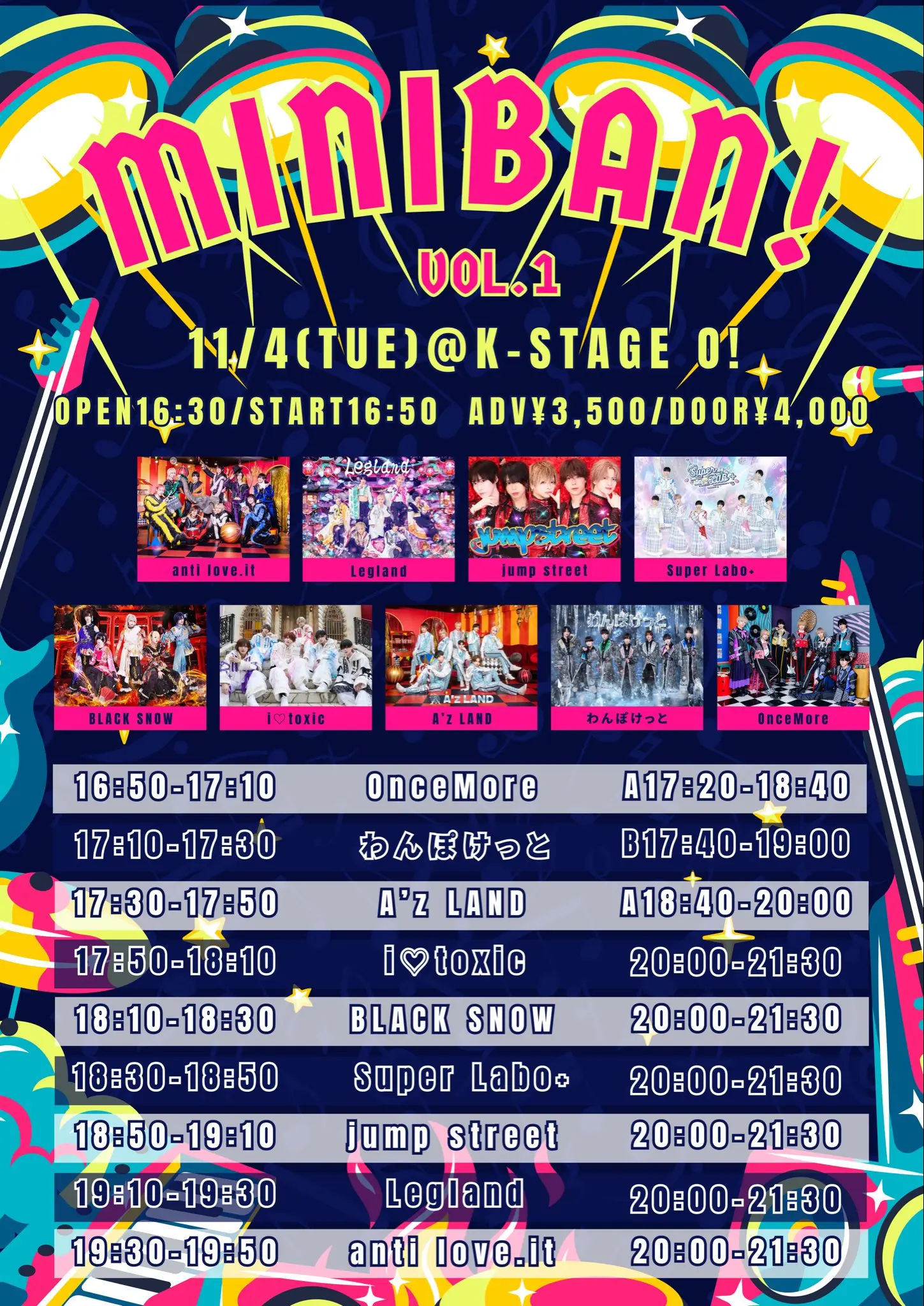 出演者 anti love.it / Legland / jump street / Super Labo+ / BLACK SNOW / i♡toxic / A’z LAND / わんぽけっと / OnceMore