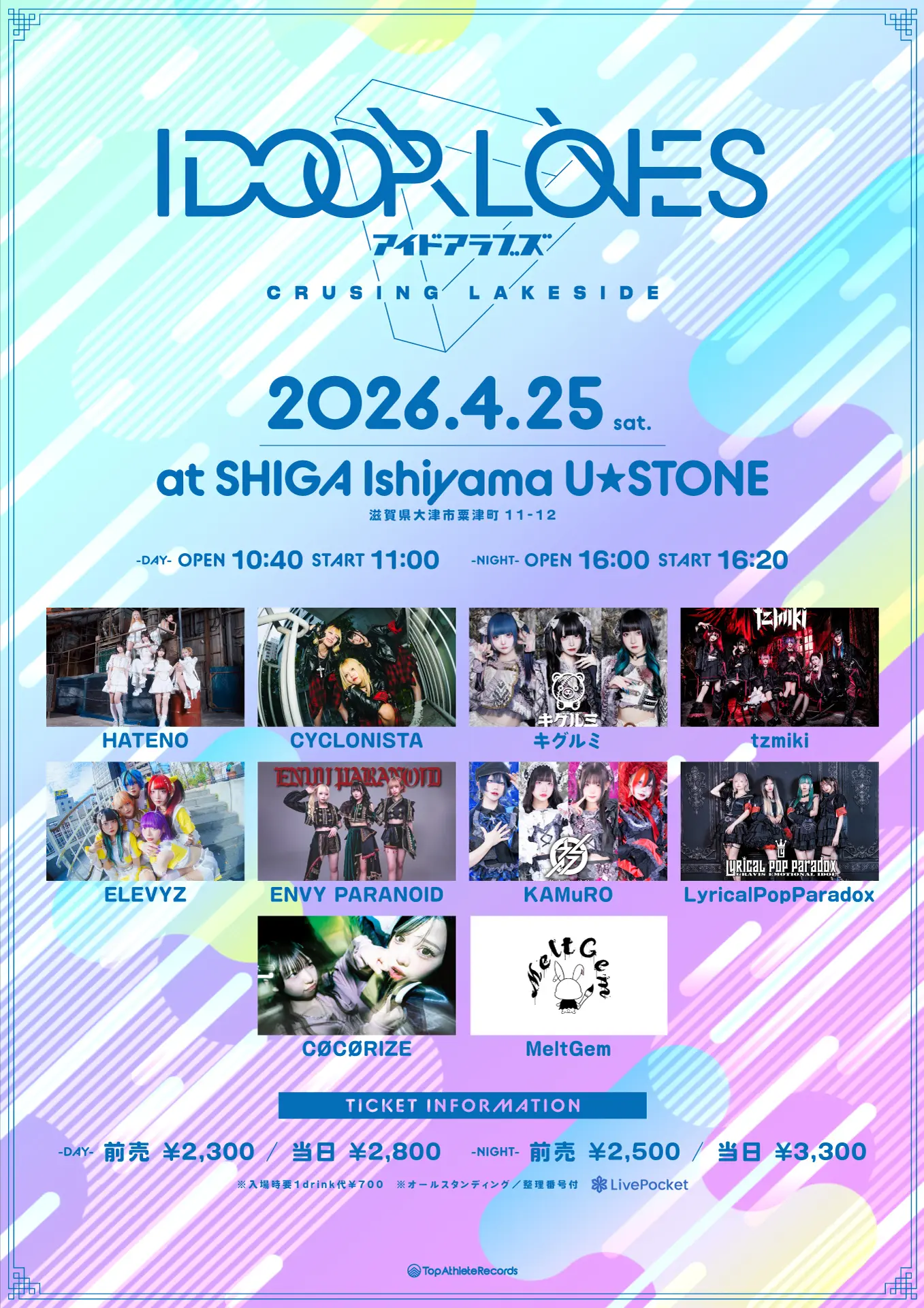 出演者 LyricalPopParadox / KAMuRO / CØCØRIZE / HATENO / CYCLONISTA / キグルミ / tzmiki / ELEVYZ / ENVY PARANOID / MeltGem