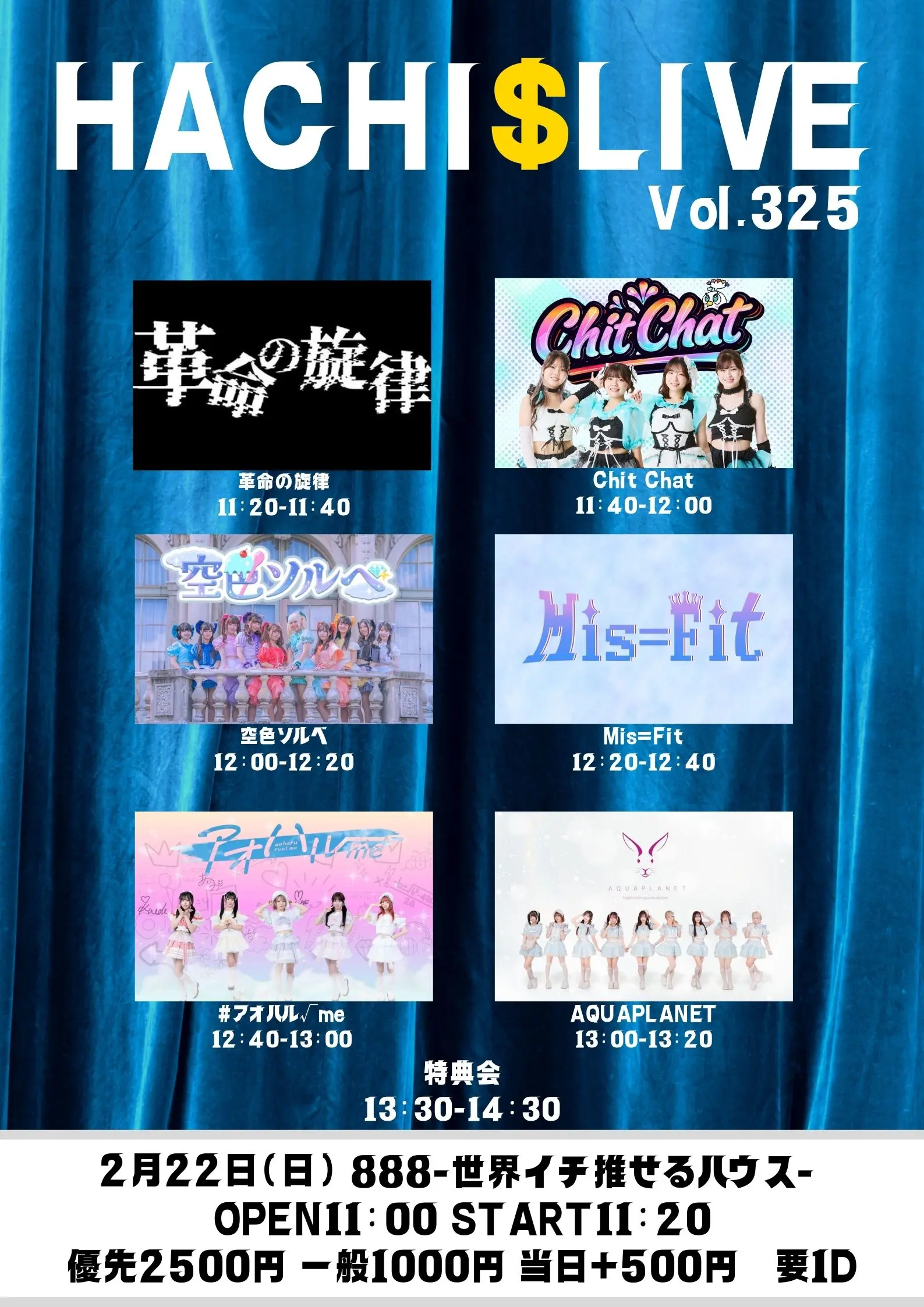 出演者 AQUAPLANET / 空色ソルベ / 革命の旋律 / アオハル√ me / Chit Chat / Mis=Fit