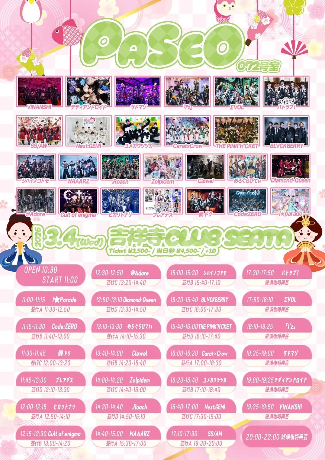 出演者 『I'z』 / ΣVOL / ユメカウツツカ / シハイノコドモ / Cult of enigma / Code:ZERO / プレアデス / 髑 ドク / Zolpidem / テディアンドロイド / VINANSHI / サドマゾ / BLVCKBERRY / THE PINK'H'CKET / .Roach / WAAARZ / Next:GEM! / SS/AW / バトラブ! / I★parade / Carat×Crow / Diamond•Queen / CrøweL / @Adore / めろぐらびてぃ / ヒカリトナリ