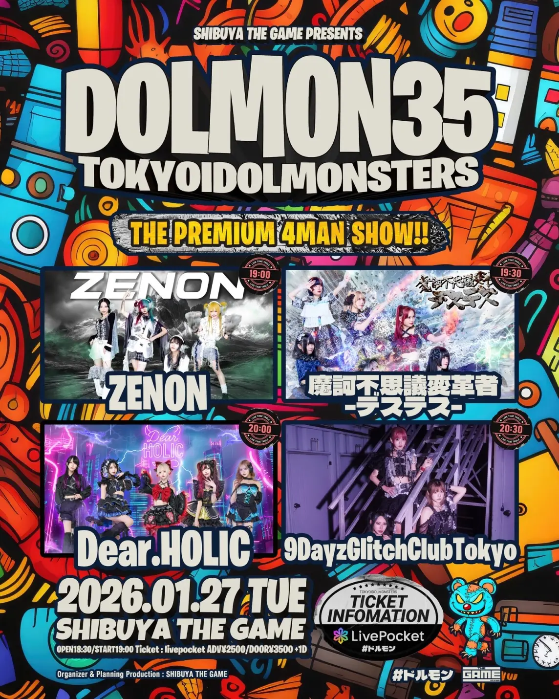 出演者 9DayzGlitchClubTokyo / 魔訶不思議変革者-デスデス- / ZENON / Dear.HOLIC