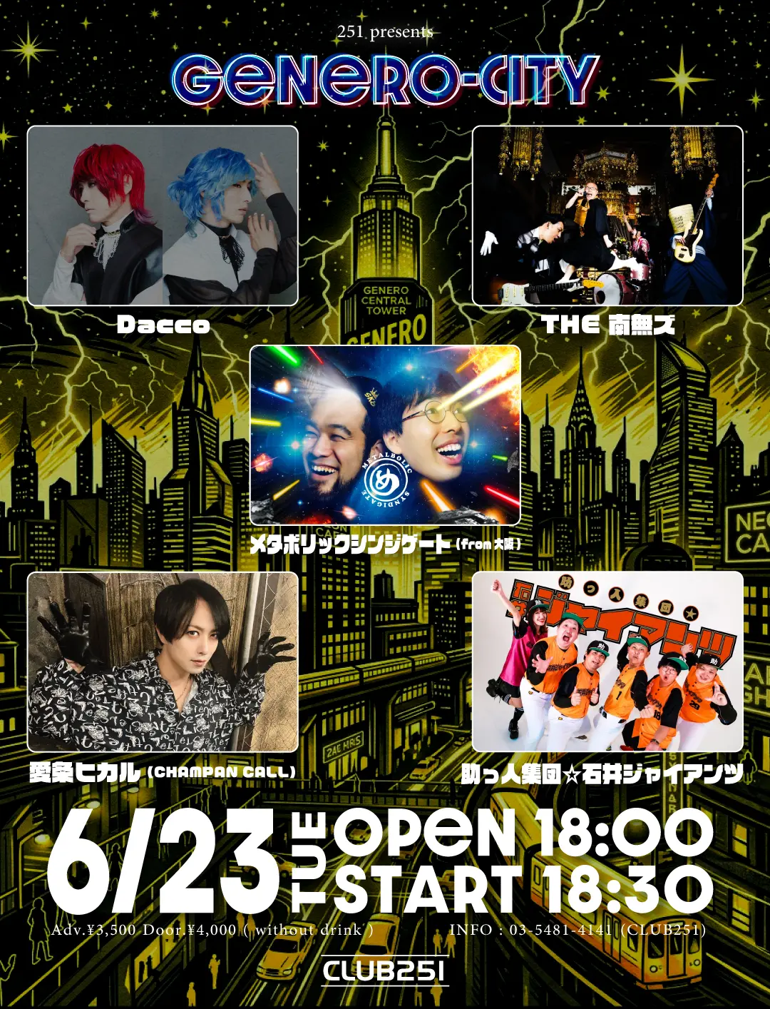 出演者 Dacco / THE 南無ズ / 愛条ヒカル(CHAMPAN CALL) / メタボリックシンジゲート / 助っ人集団☆石井ジャイアンツ