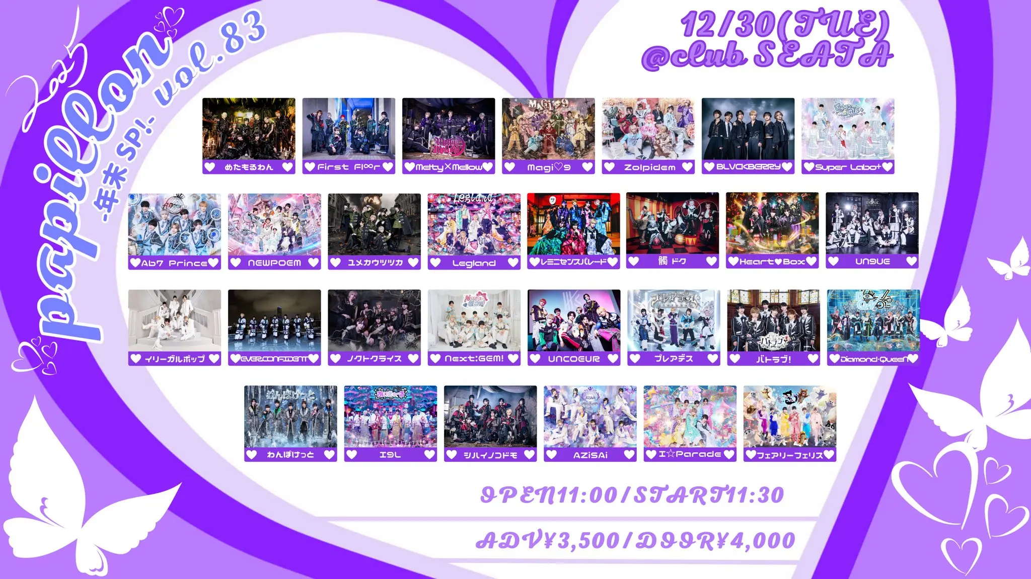 出演者 めたもるわん / First Fl∞r / Melty×Mellow / Magi♡9 / Zolpidem / BLVCKBERRY / Super Labo+ / Ab7 Prince / NEWPOEM / ユメカウツツカ / Legland / レミニセンスパレード / 髑 ドク / Heart❤︎Box / UN9UE / イリーガルポップ / EVER.CONFIDENT / ノクトクライス / Next:GEM! / UNCOEUR / プレアデス / バトラブ! / Diamond・QueeN / わんぽけっと / I9L / シハイノコドモ / AZiSAi / I⭐︎Parade / フェアリーフェリス