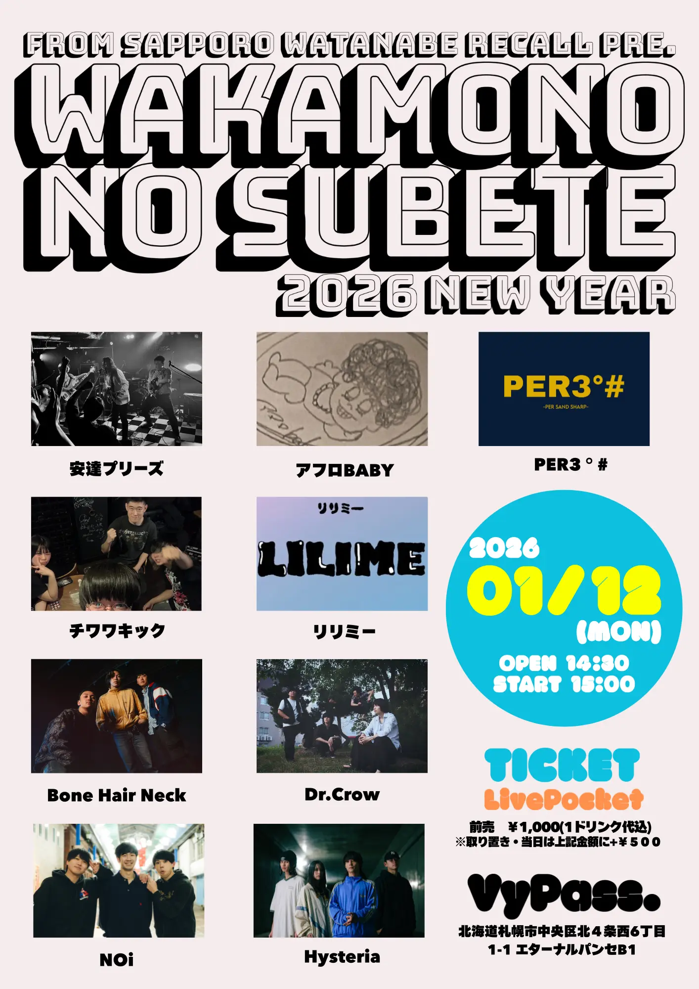 出演者 安達プリーズ / アフロBABY / チワワキック / リリミー / Bone Hair Neck / Dr.crow / PER3°# / NOi / Hysteria