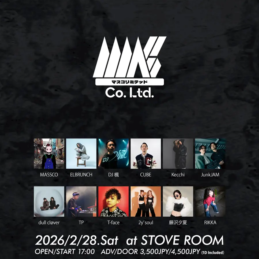 出演者 MASSCO / ELBRUNCH / DJ楓 / CUBE / Kecchi / JunkJam / dull cløver / TP / T-face / 2y’soul / 藤沢夕夏 / RIKKA