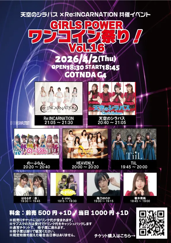 天空のシラバス×Re:INCARNATION共催イベント GiRLS POWER ワンコイン祭り!Vol.16