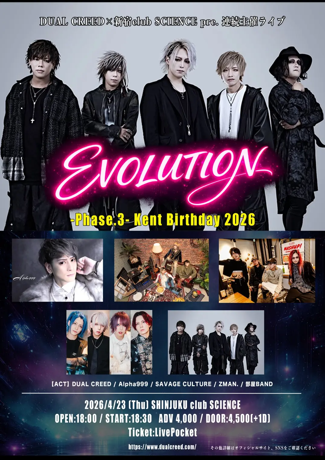 DUAL CREED×新宿club SCIENCE pre. 連続主催ライブ EVOLUTION -Phase.3- Kent Birthday 2026