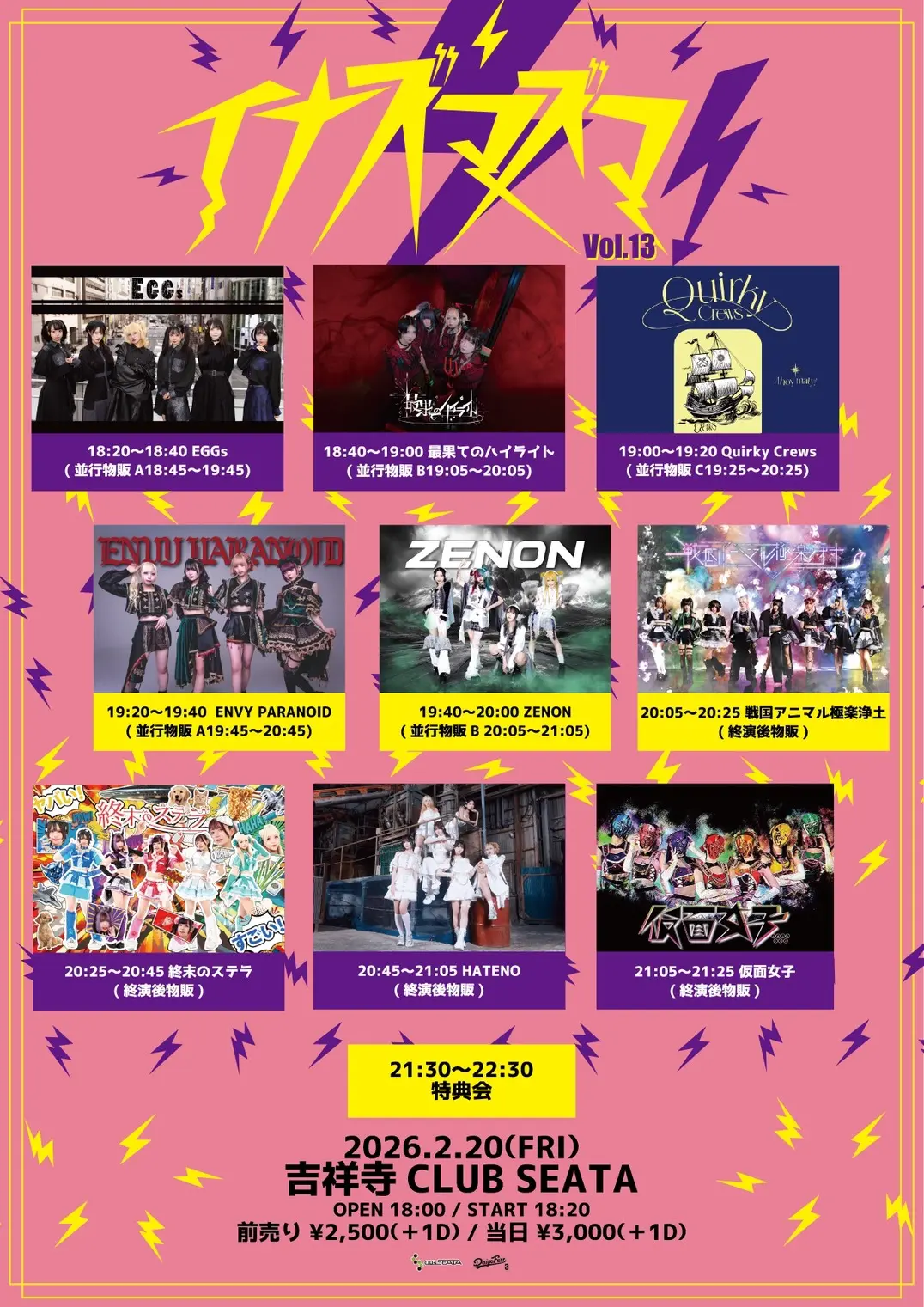 出演者 仮面女子 / 終末のステラ / HATENO / 戦国アニマル極楽浄土 / 最果てのハイライト / ENVY PARANOID / ZENON / EGGs / Quirky Crews