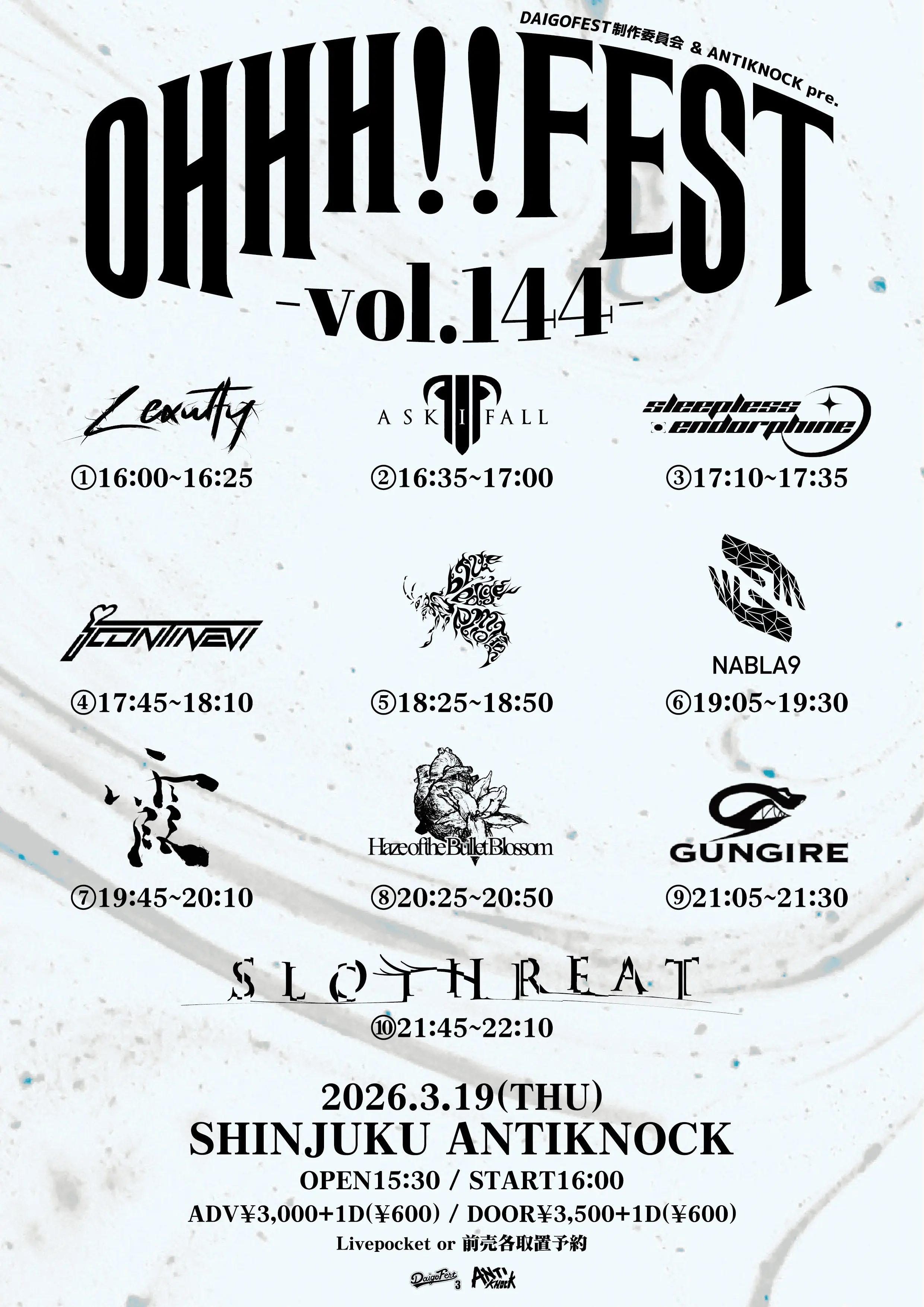 出演者 icontinew / SLOTHREAT / GUNGIRE / Haze of the Bullet Blossom / 霞 / NABLA9 / blue edge emotion / ASK I FALL / Sleepless Endorphine / Lexulty