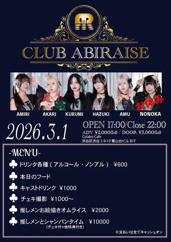 出演者 DA・BAMBI / 大高 羽月 / 冴城 希華 / 大空 紅鈴 / 結城 愛美莉 / 一之瀬 あむ / 麗羽くるみ